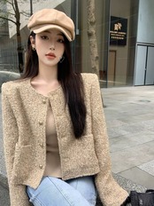 気質小さな香りの良いスタイルツイードジャケット女性秋 2023 新しいスタイル小さなルーズショート長袖カーディガントップ ロング オータム 秋物 bstraw6710369717 | beaute25