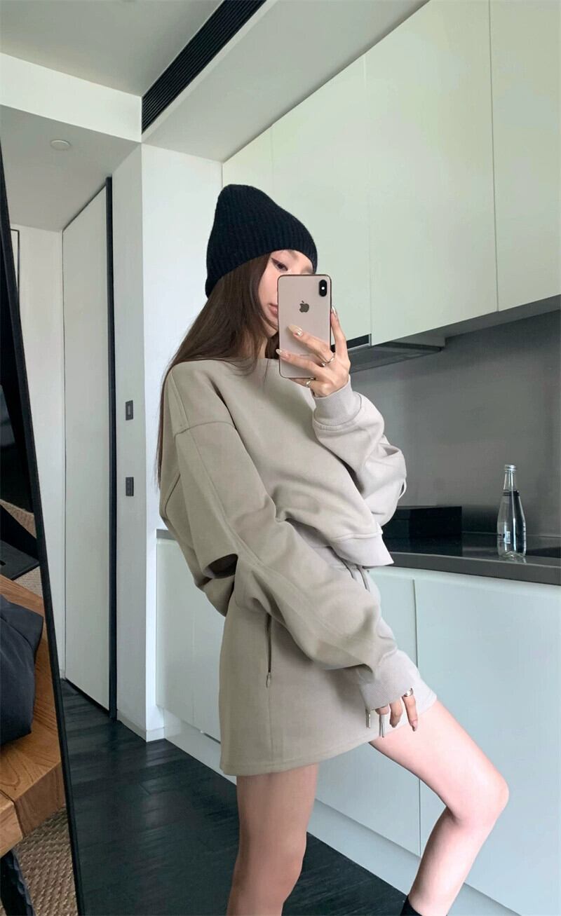 黒の怠惰なスタイルのルーズプルオーバースウェットシャツ女性の秋のアメリカンレトロ長袖ジャケットデザイン中空トップ ロング ブラック オータム 秋物 bstraw2404333284 | beaute25