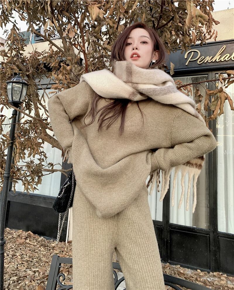 フランスのレトロなルーズ V ネックニットソフトワックスセーター女性の秋と冬のアウタープルオーバー長袖怠惰なスタイルのシックなトップ ロング オータム 秋物 ウィンター 冬物 Vネック bstraw51760314546 | beaute25