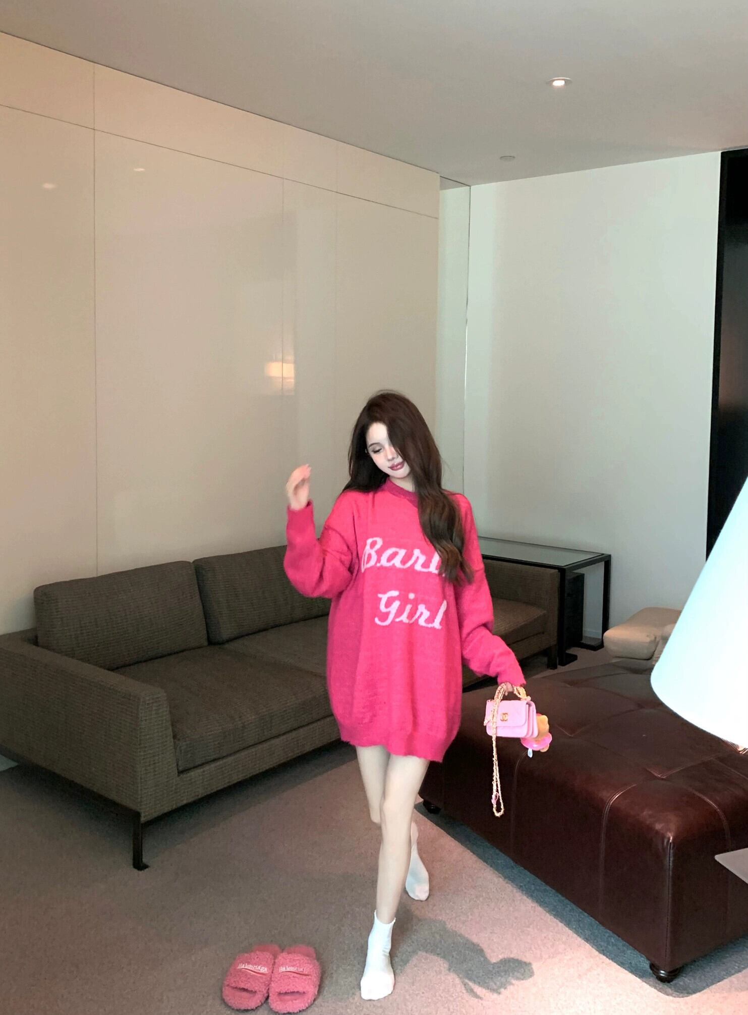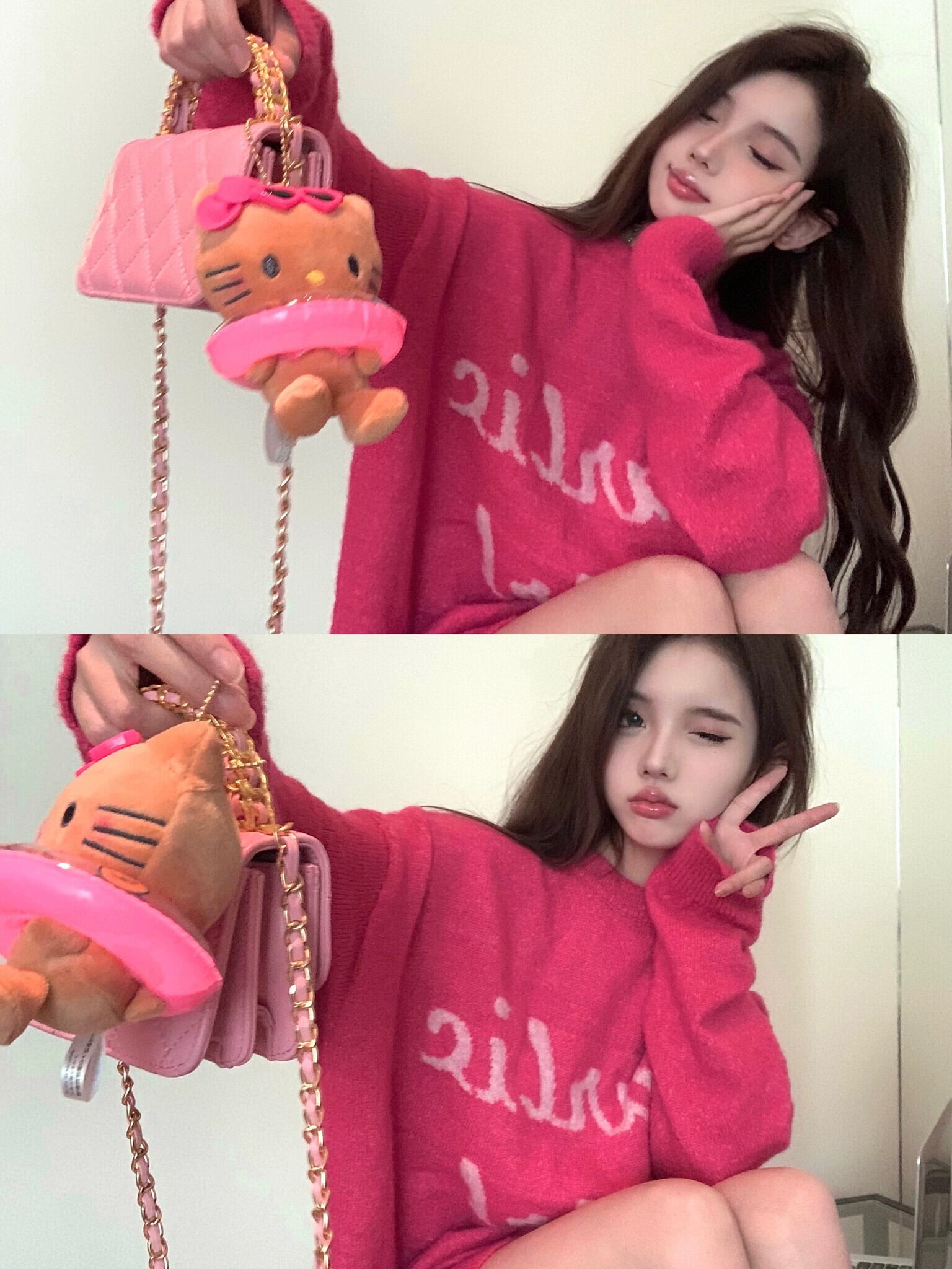 ローズレッド怠惰なスタイルのセーターの女性の秋のラウンドネックプルオーバーセーターカジュアルルーズオーバーサイズ長袖トップ ロング オータム 秋物 Oネック bstraw51670813259 | beaute25