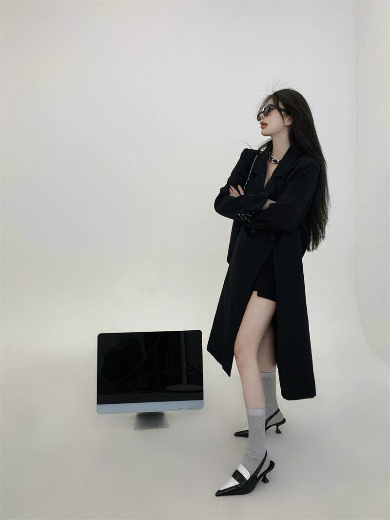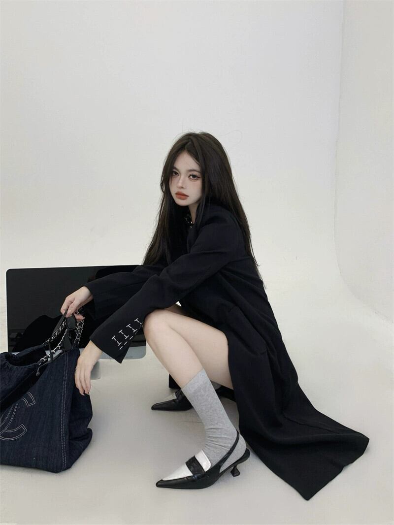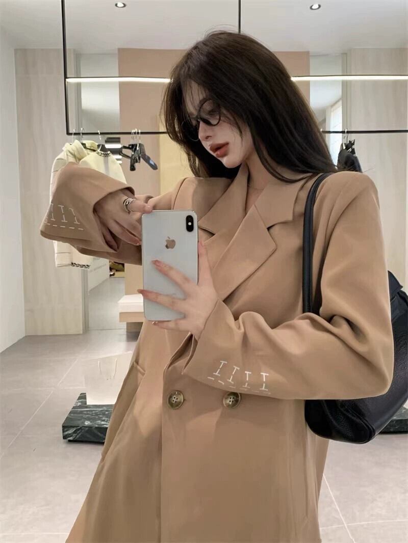 -end 気質スーツウインドブレーカージャケット女性秋 2023 新しいヘップバーンスタイルルーズミッドレングスブラックコート オータム 秋物 bstraw35534001061 | beaute25