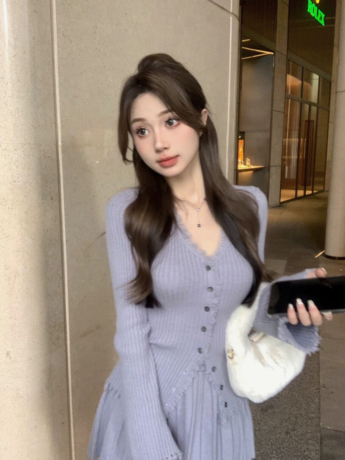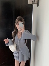 純粋な欲望スウィートガールスーツ長袖 V ネックスリムニットカーディガン女性の秋のプリーツスカートショートスカート 2 点セット ロング 大人ガーリー キュート カジュアル オータム 秋物 Vネック bstraw30585780763 | beaute25