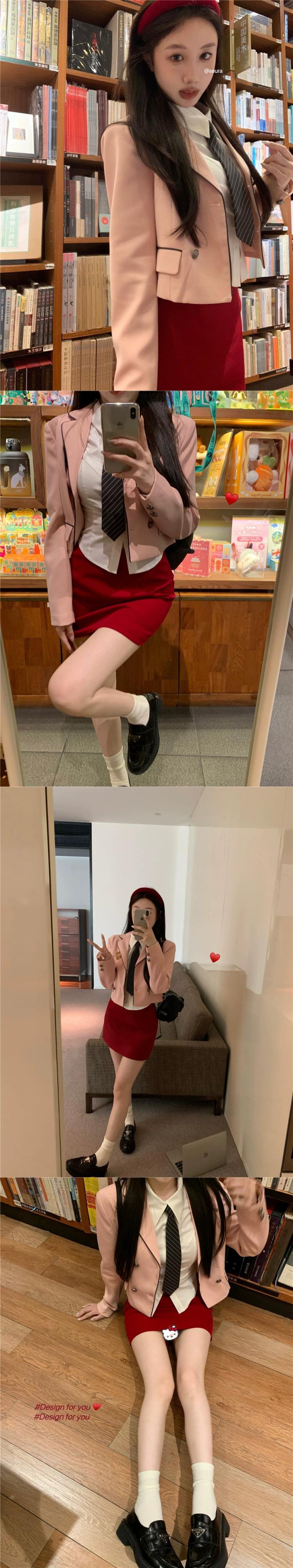 色:コート,ネクタイ付きシャツ,スカート,バッジ