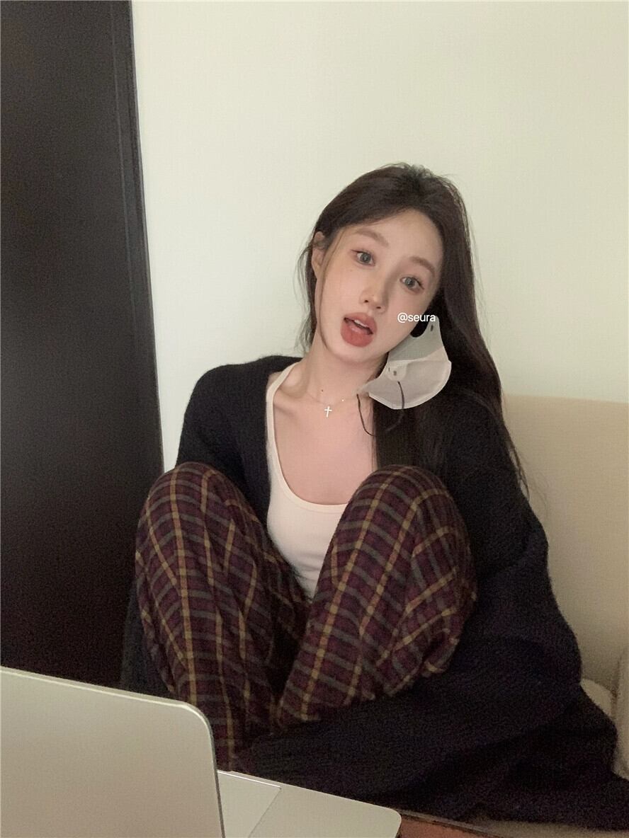 怠惰な黒のセータージャケットの女性の秋 2023 新しいスタイルルーズミッドレングススタイルニットカーディガントップ ブラック オータム 秋物 bstraw59436103907 | beaute25