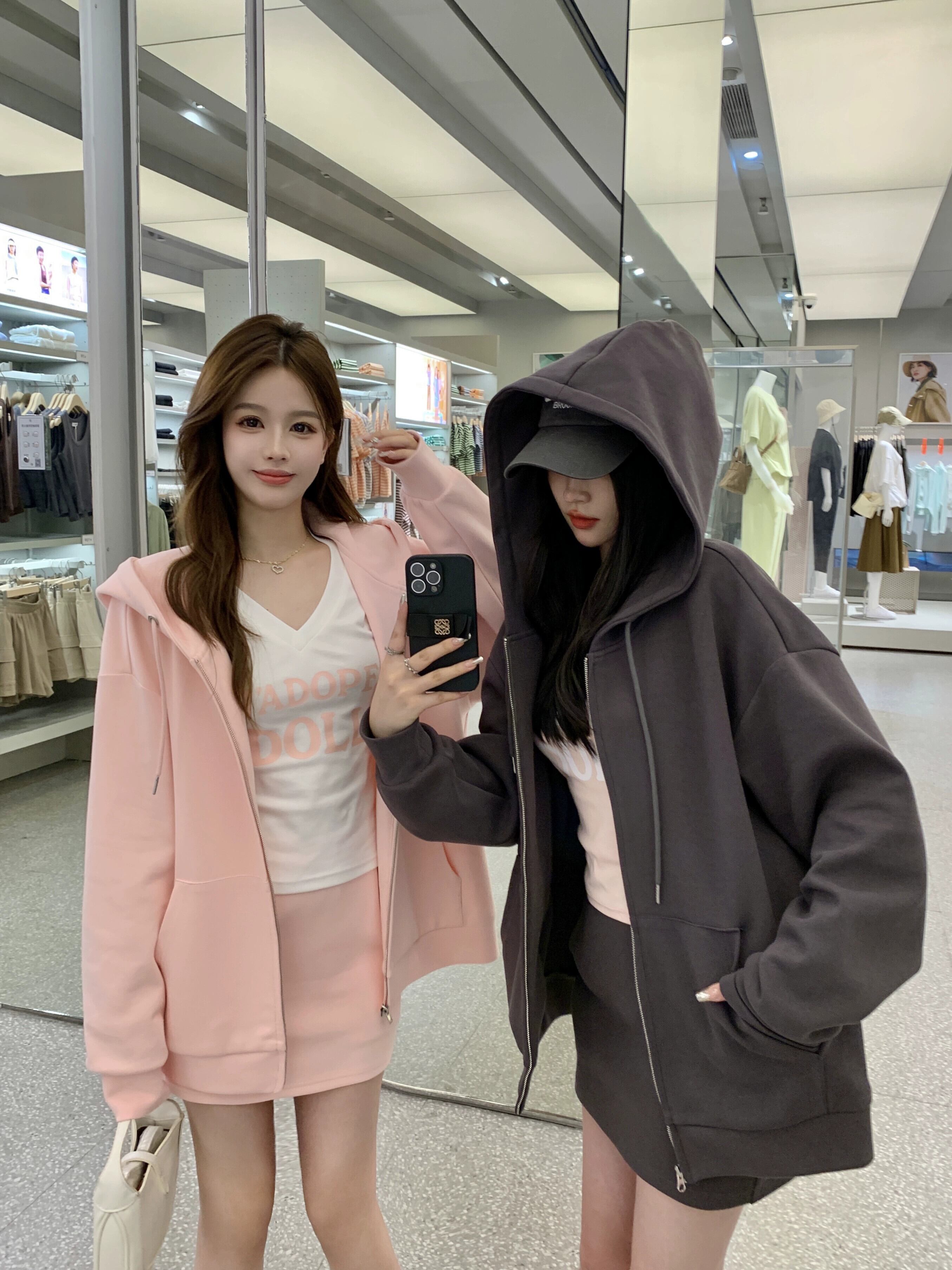 色:ホワイトピーチピンクのジャケット,ROグレージャケット,白桃ピンクのスカート,ROグレースカート,白いTシャツ,ガールズピンクTシャツ