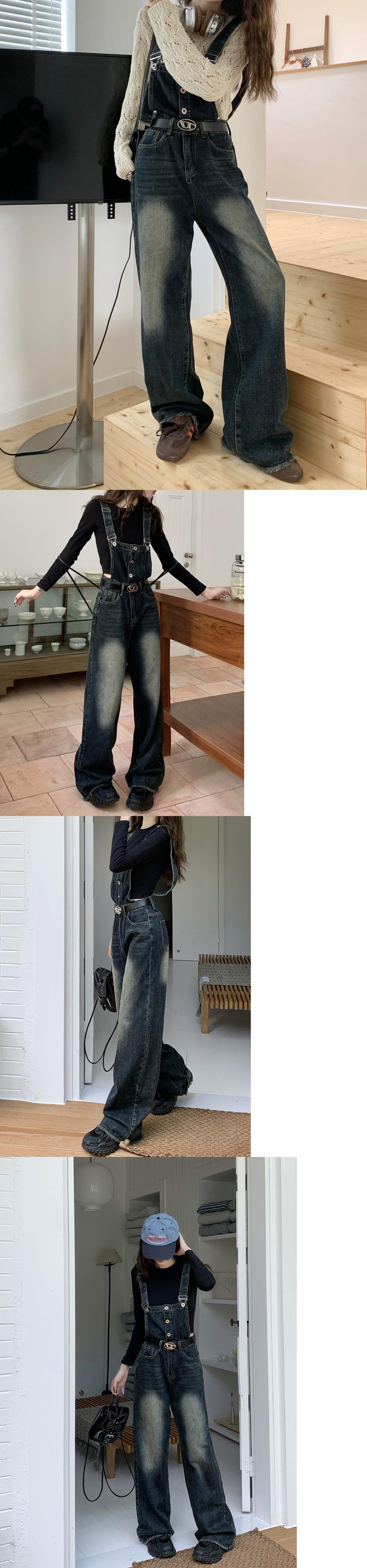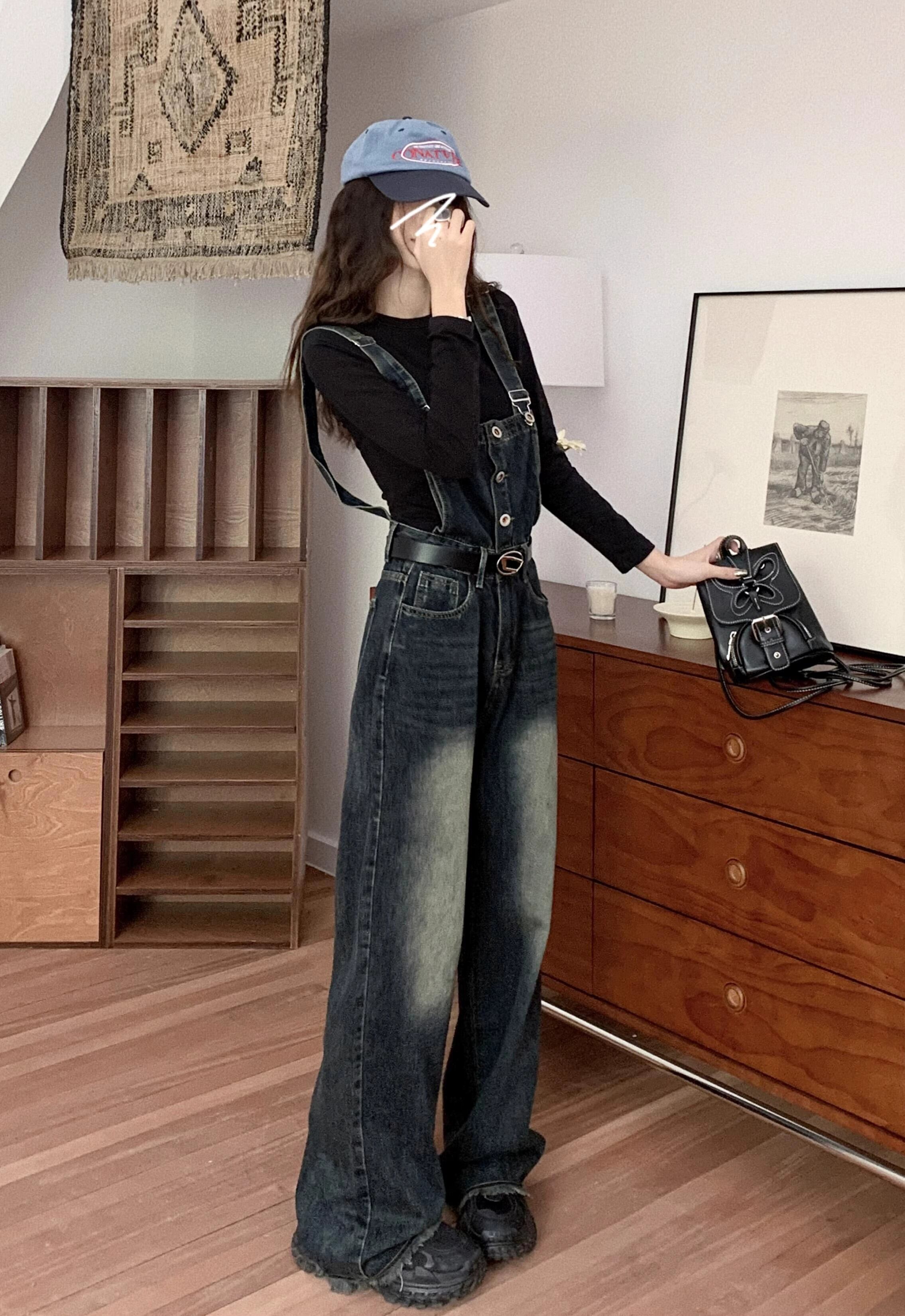 レトロな洗浄生エッジデニムオーバーオール女性秋ハイウエストストレートジャンプスーツルーズワイドレッグパンツ ハイウェスト オータム 秋物 ワイドパンツ bstraw26230523275 | beaute25