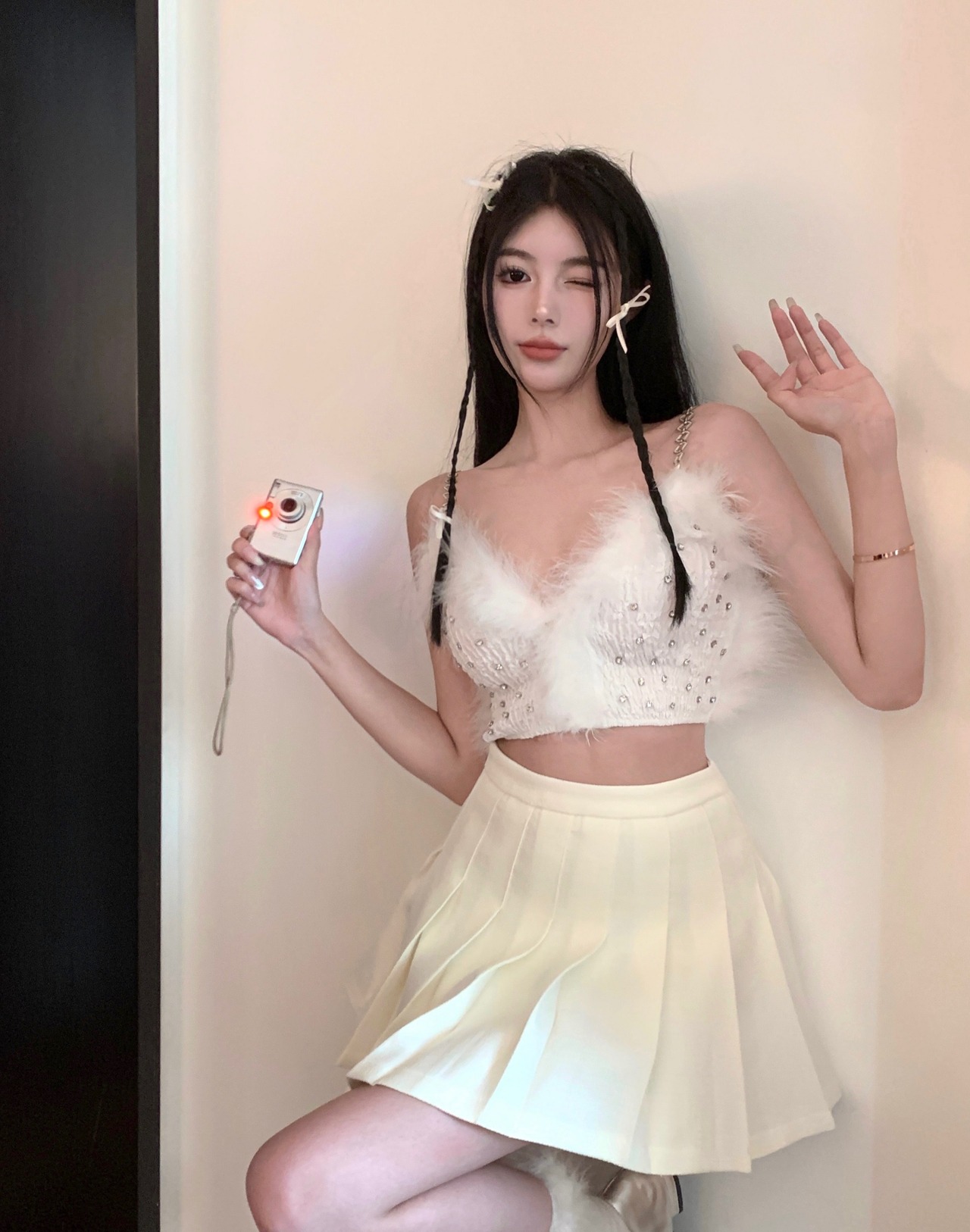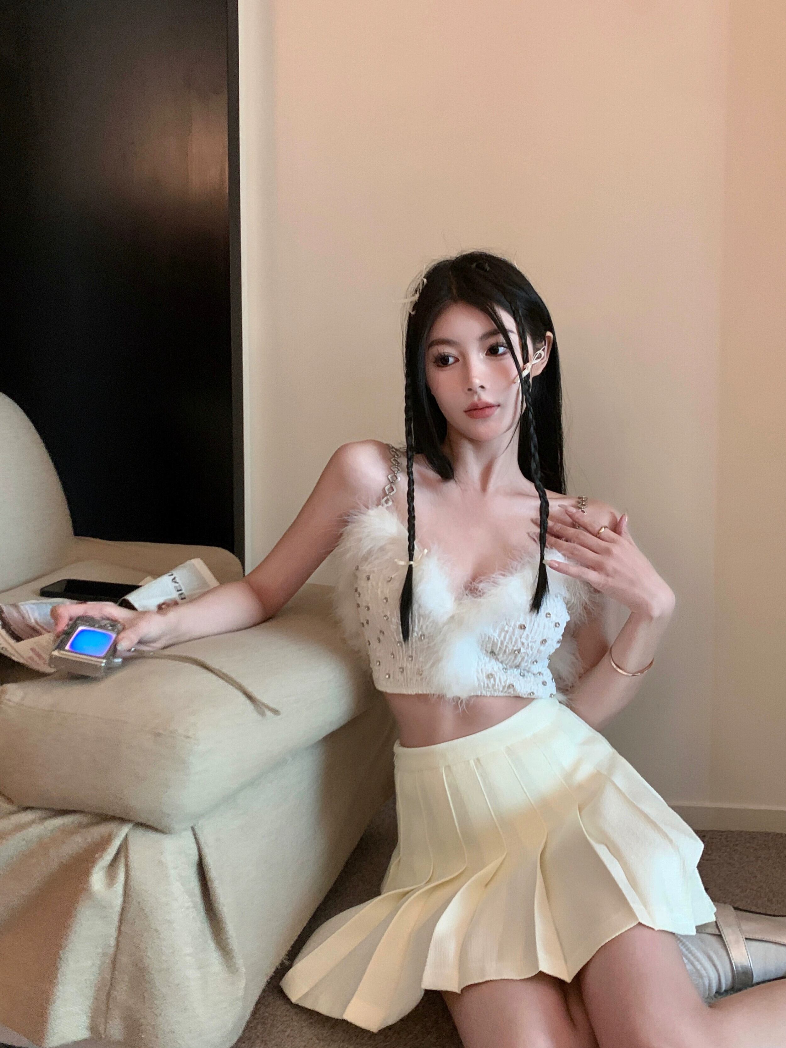 ホット重工業セクシーなキャミソールトップスーツ女性の夏のスカートハイウエストプリーツスカートスカートツーピースセット ハイウェスト サマー 夏物 bstraw92305669114 | beaute25