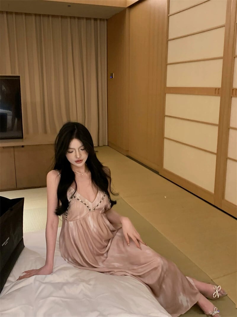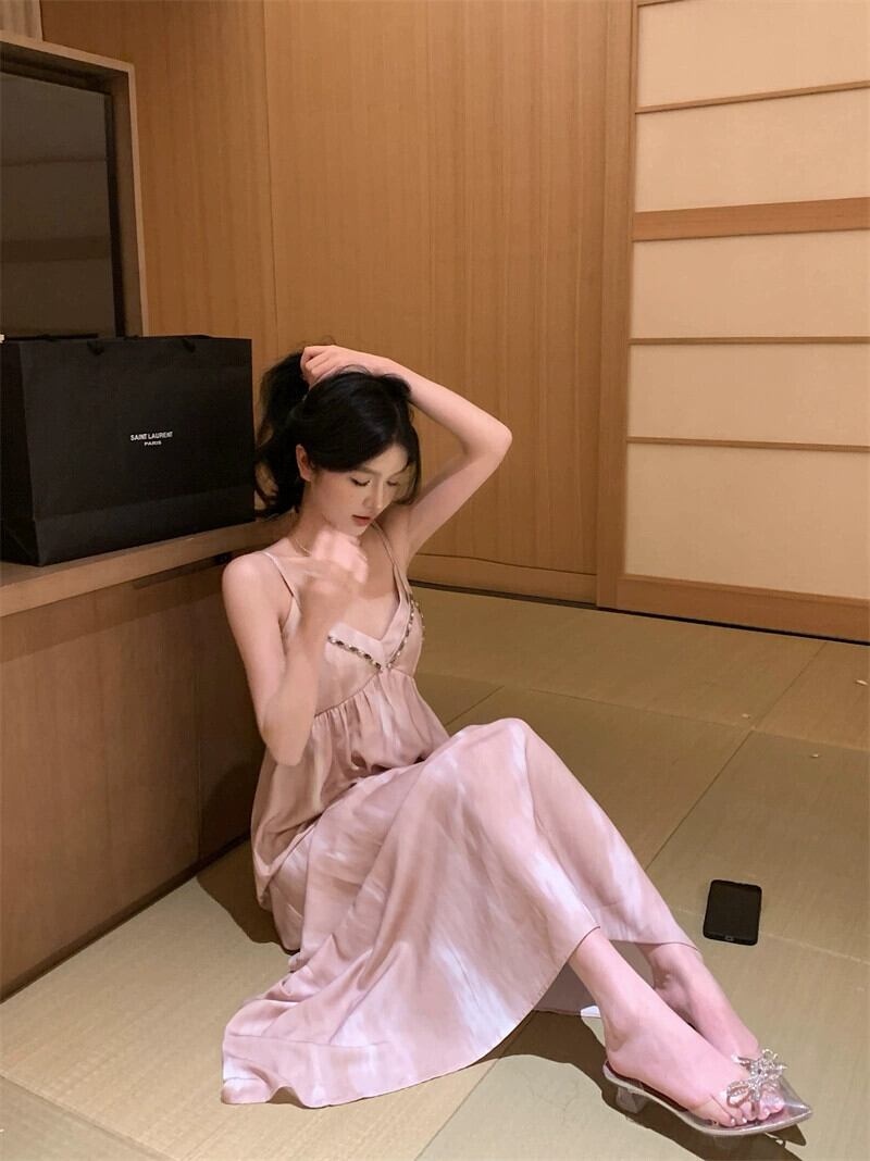 タイ重工業フラッシュダイヤモンドサスペンダードレス女性の夏の海辺の休暇スカートルーズ V ネックハイエンドロングスカート サマー 夏物 Vネック bstraw15438658280 | beaute25