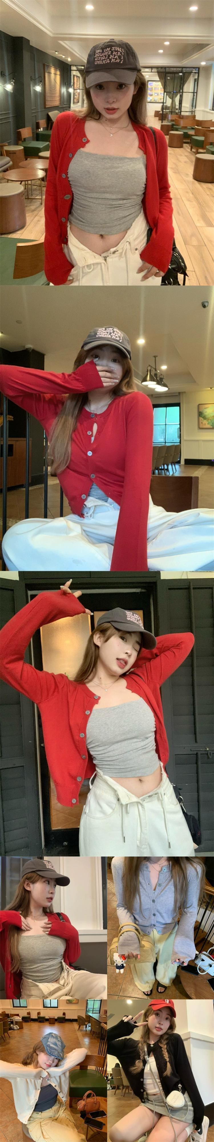色:赤いカーディガン,ブラックカーディガン,グレーのカーディガン,アプリコットカーディガン,ホワイトサスペンダー,ライトグレーのサスペンダー,ダークグレーのスリング