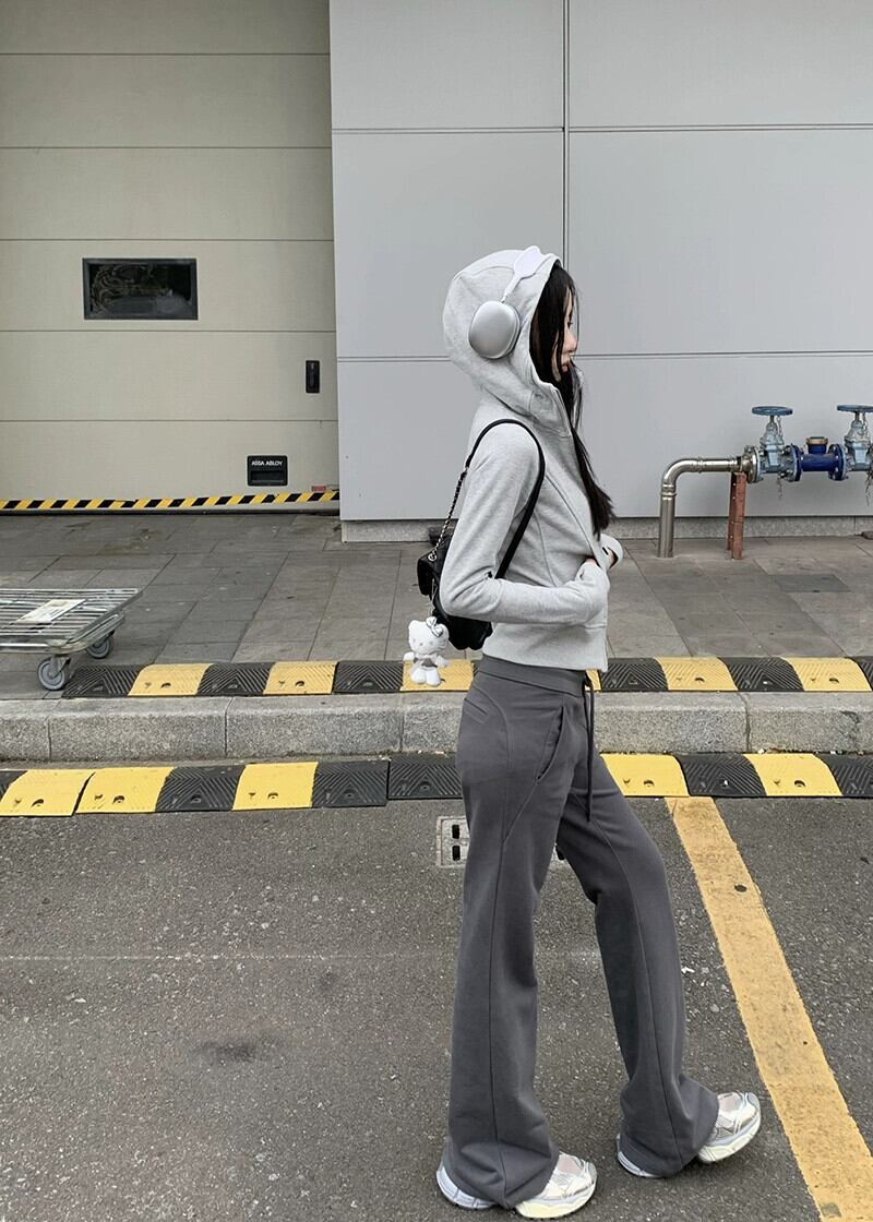 色:ライトグレーのトップ,コーヒートップ,グレーパンツ,黒いズボン