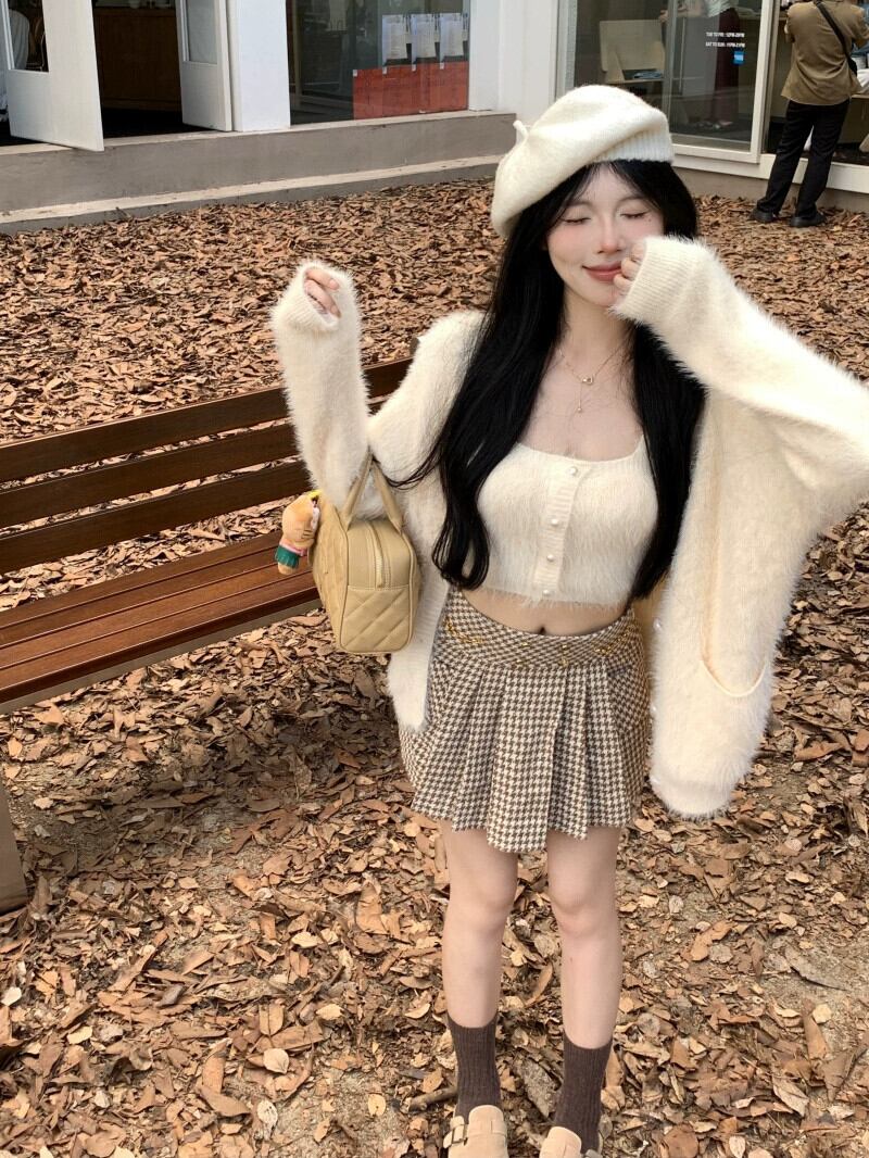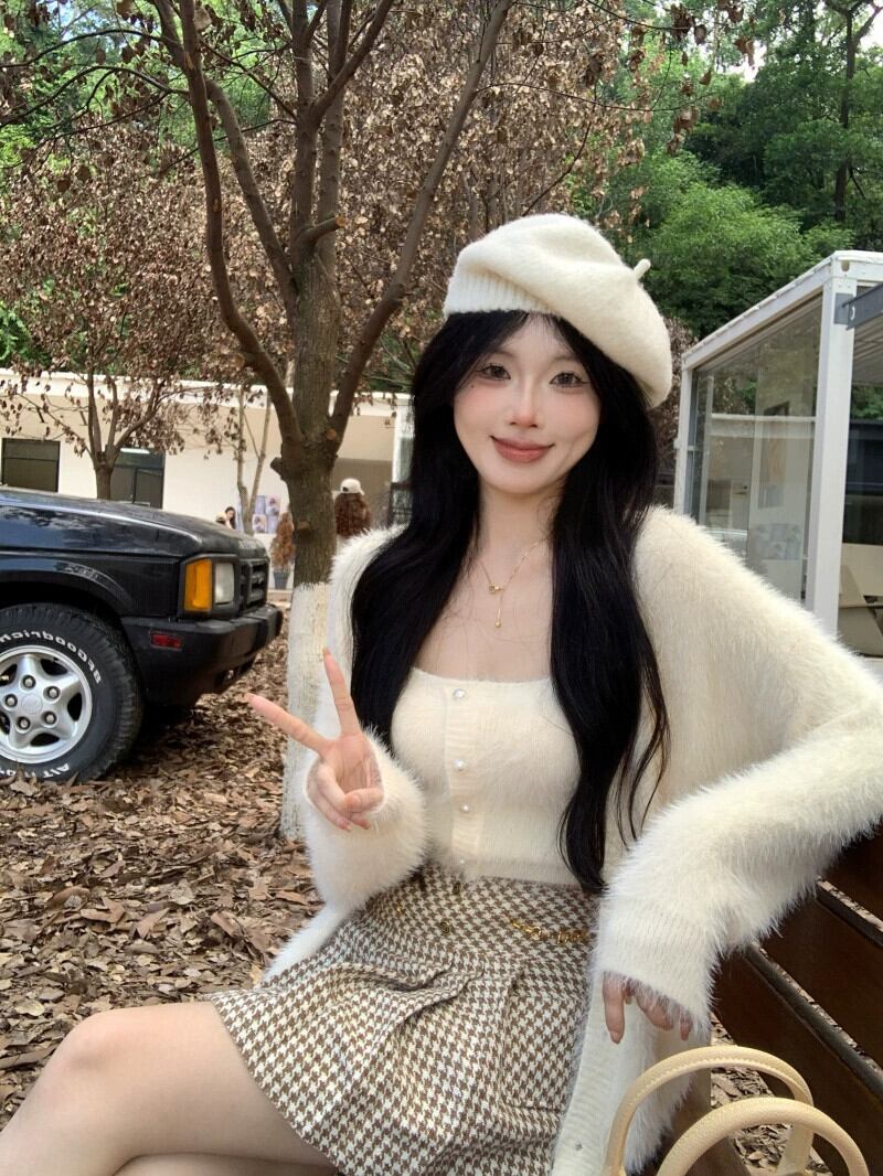 ブレストスタイルの衣装セット、レイジースタイル、柔らかくワックスのような豪華なセータージャケット、女性の秋のキャミソールトップ2点セット オータム 秋物 bstraw78809932018 | beaute25