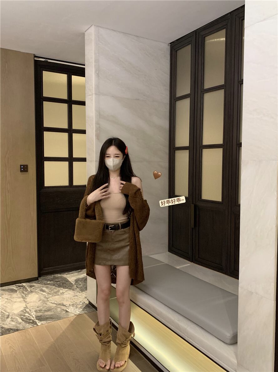 色:セーターカーディガン,内部スリングと内蔵胸パッド,短いスカート