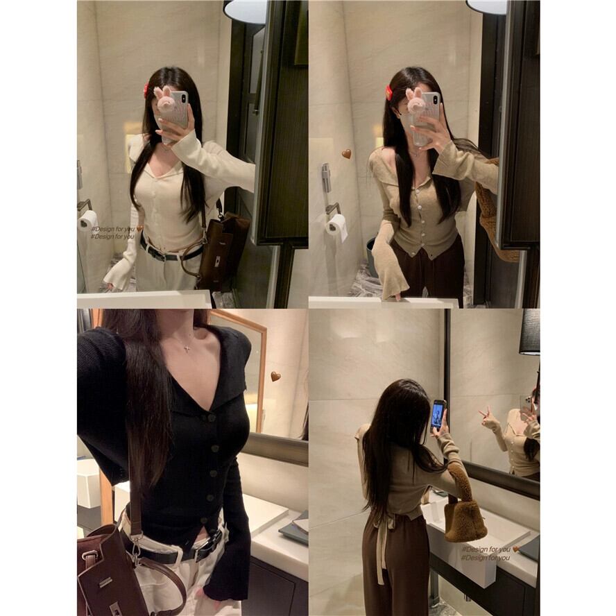 エド V ネックセーター女性秋シングルブレストカーディガンコートカーキ長袖甘いネクタイスリムフィットトップ ロング 大人ガーリー スウィート キュート カジュアル オータム 秋物 Vネック bstraw63948623431 | beaute25