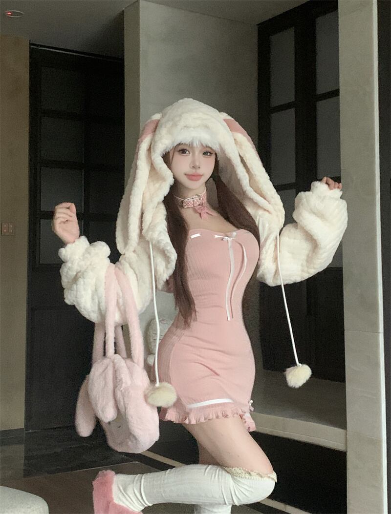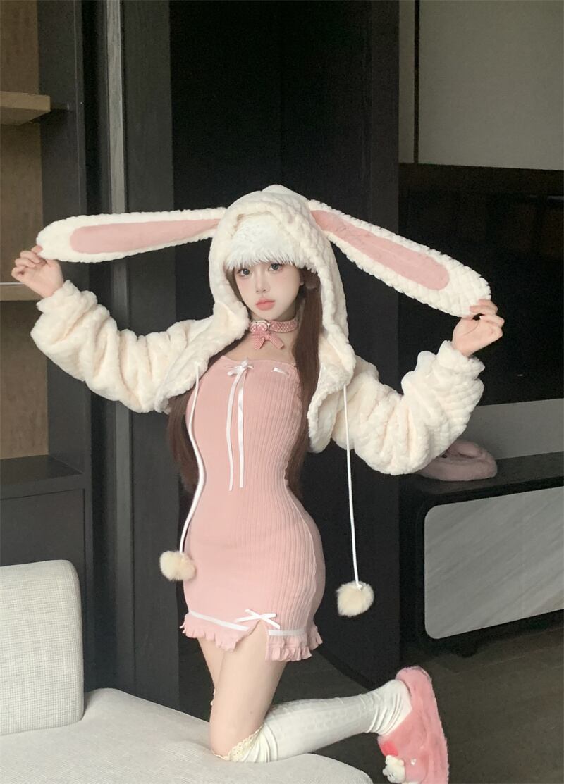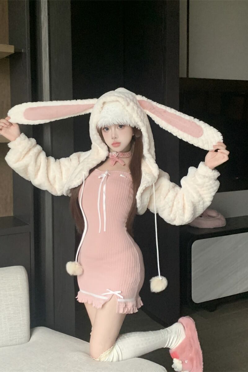 少しキュートで甘いウサギの耳のフード付き豪華なコートの女性、秋のデザイン、ゆったりとしたショート ショール トップ 大人ガーリー スウィート カジュアル オータム 秋物 bstraw91499265053 | beaute25