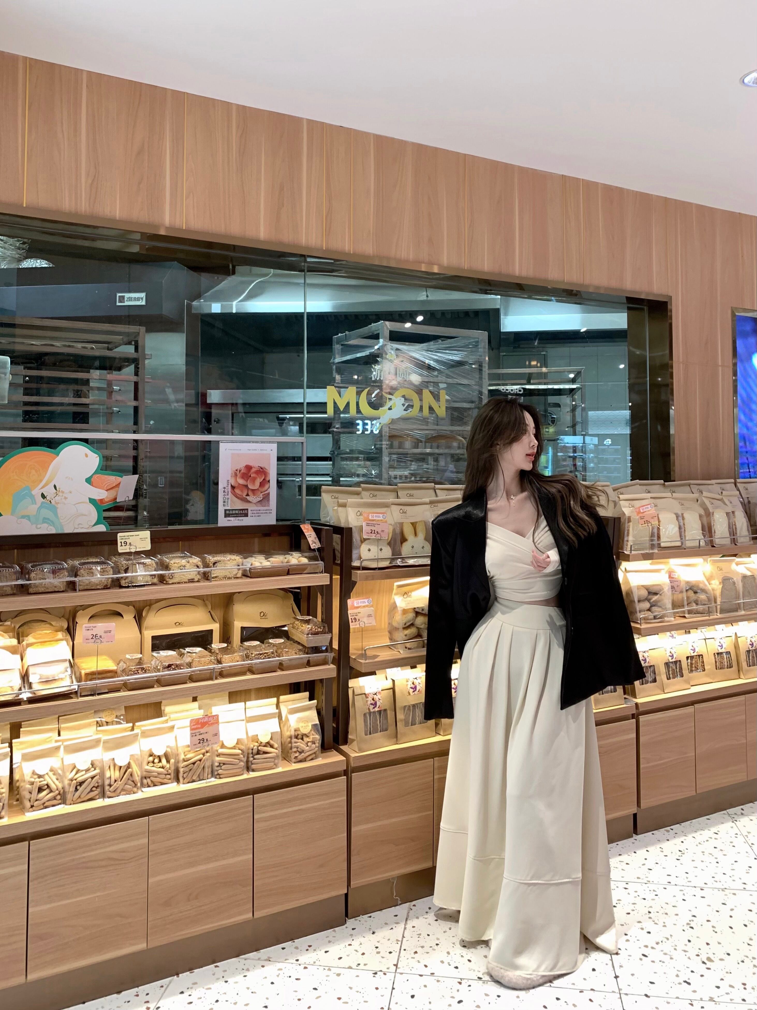 色:スーツジャケット,乳白色のトップ,乳白色のスカート