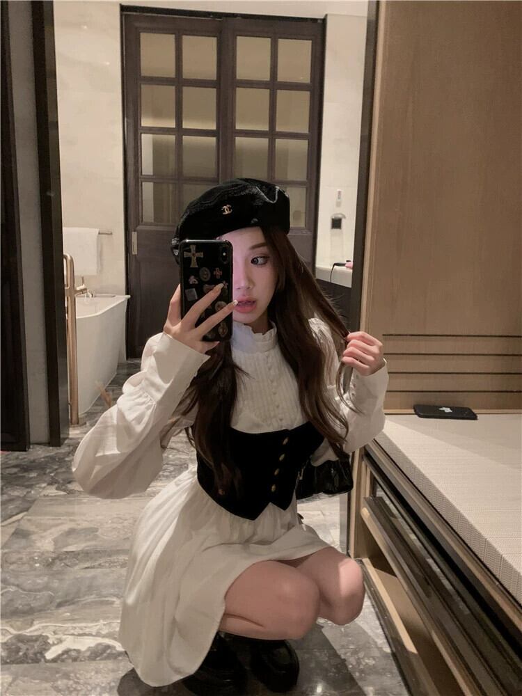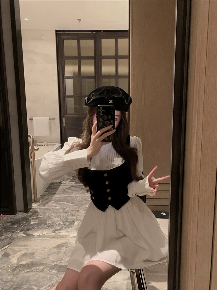フレンチレトロ白シャツドレス女性の秋 2023 長袖ウエストショートスカートスタンドカラー A ラインスカート ロング ホワイト オータム 秋物 Aライン bstraw97789587905 | beaute25