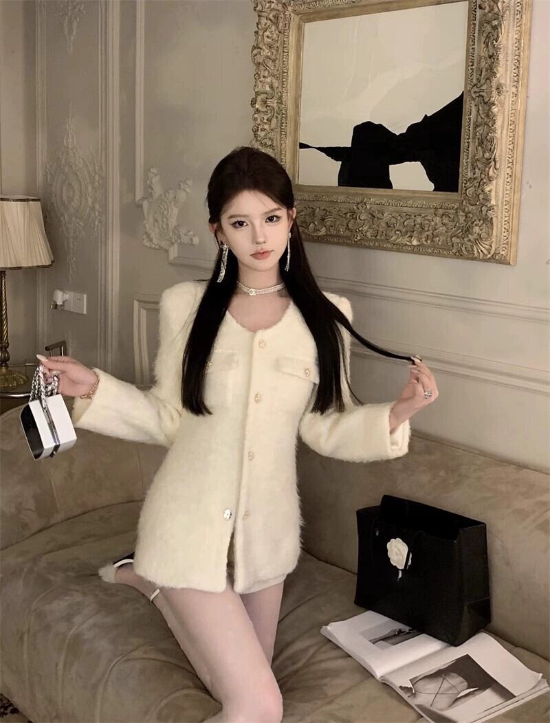 セレブハイエンドスモールフレグランスジャケットレディース2023秋冬新作オフホワイトウエスト長袖トップユニークなアウターウェア ロング オータム 秋物 ウィンター 冬物 bstraw87939855641 | beaute25