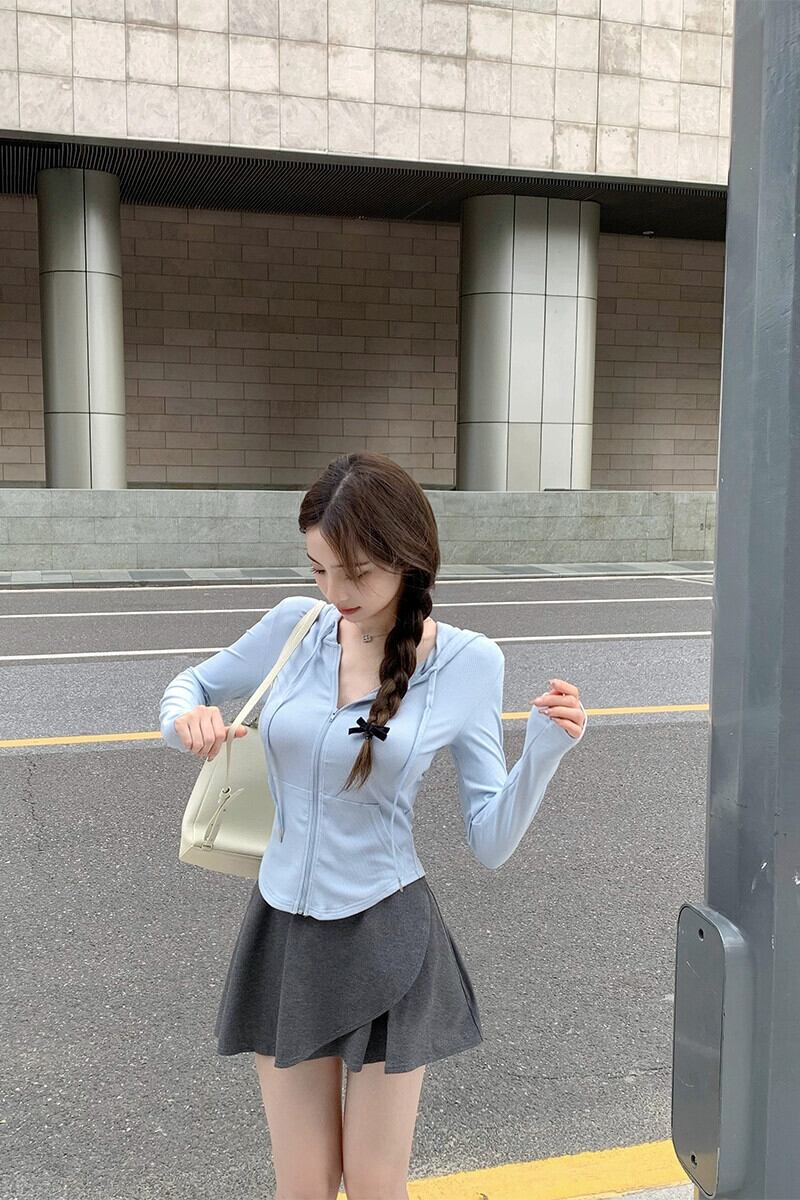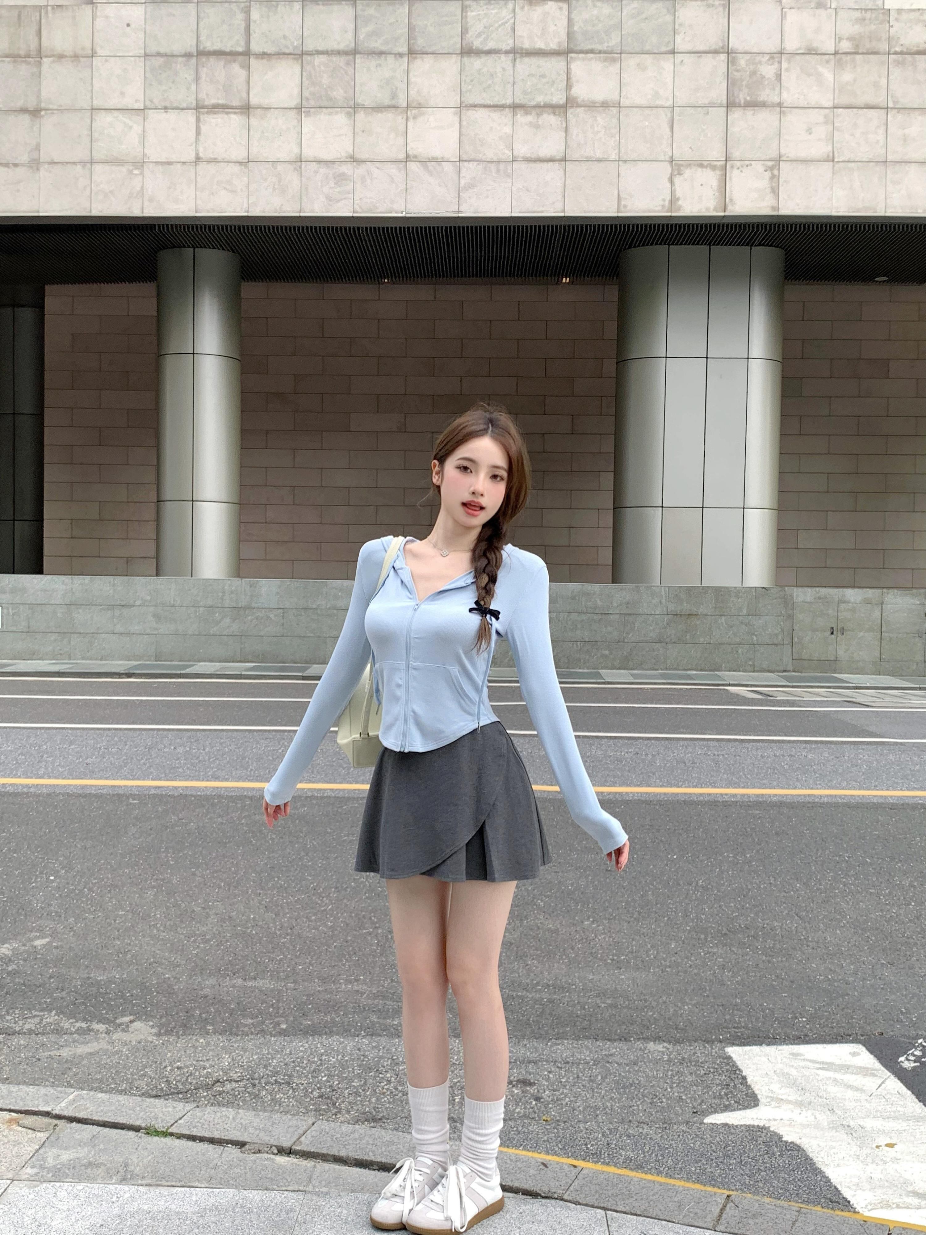 ブルー長袖フード付きスウェットシャツジャケット女性秋の純粋な欲望スタイルスリムショートカジュアルスポーツカーディガンジッパートップ ロング オータム 秋物 ピュア bstraw16593785435 | beaute25