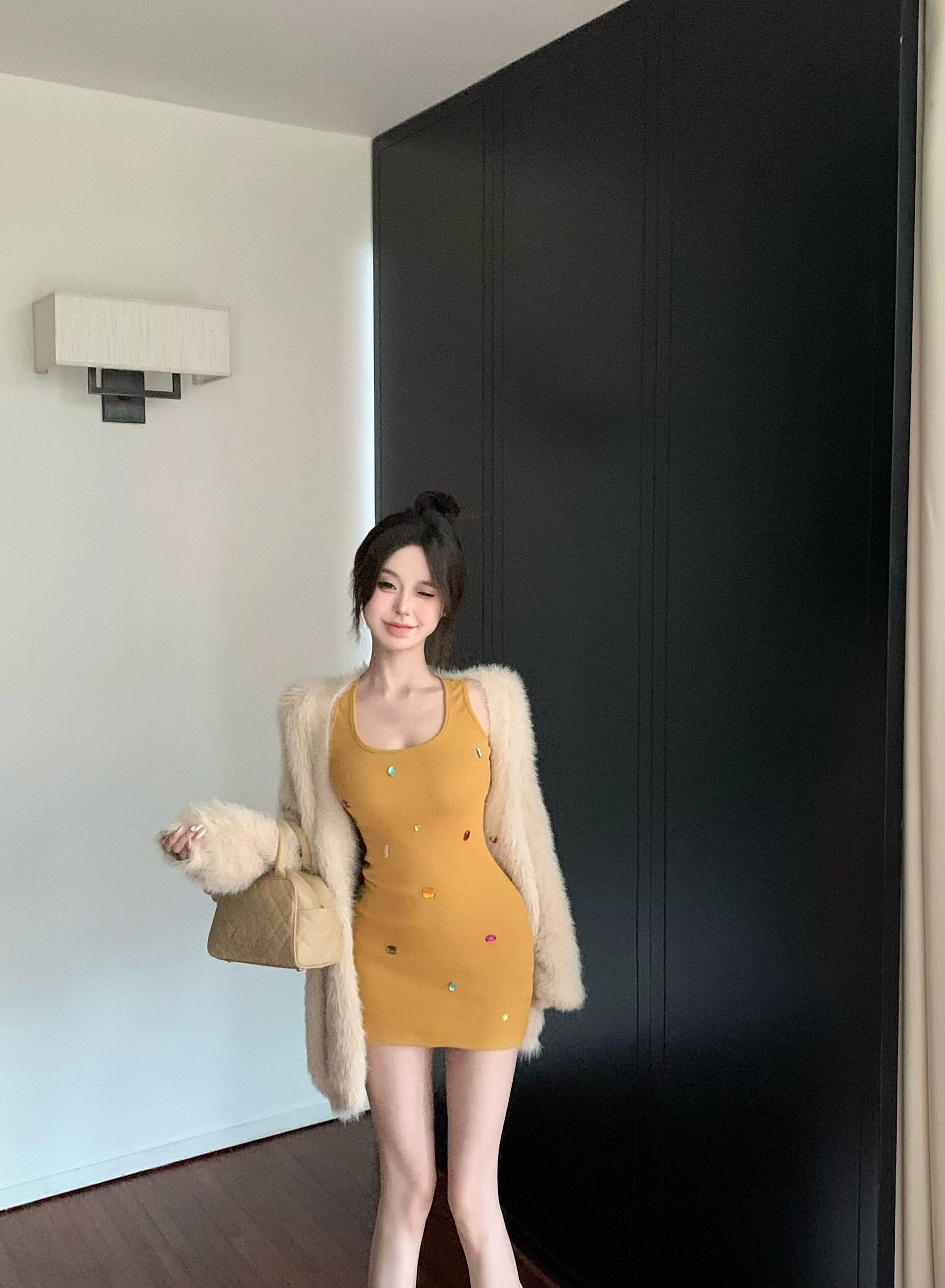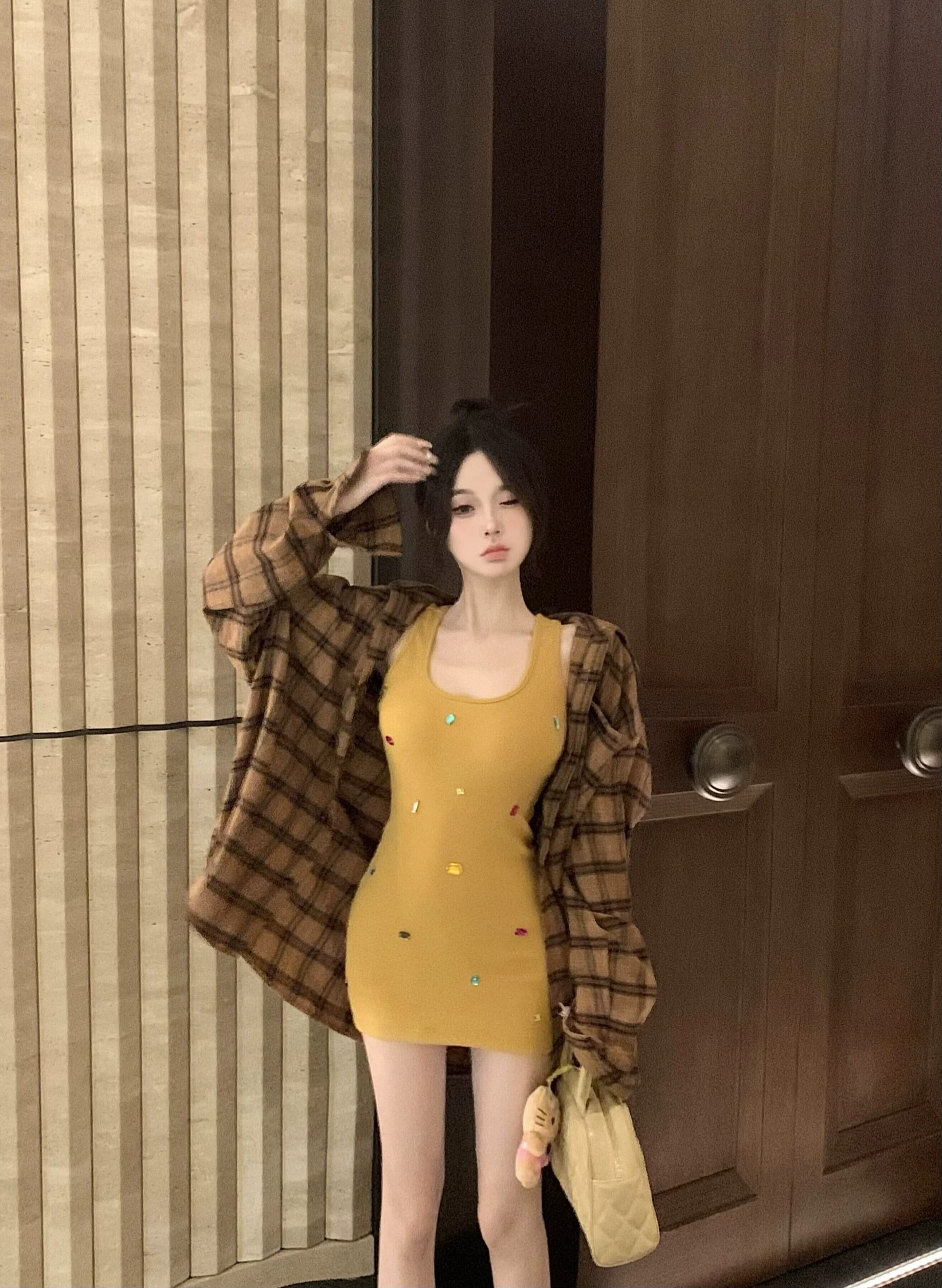 色:セーターコート,シャツ,ヒップスカート