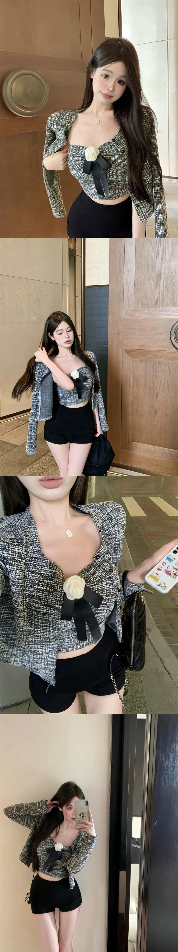 気質社交家スーツ小さな香りのカーディガンショートコート女性の秋のセクシーなチューブトップベストフラワートップツーピースセット オータム 秋物 フラワーデザイン bstraw44313364397 | beaute25