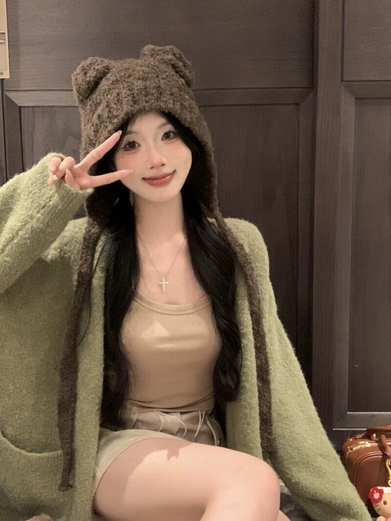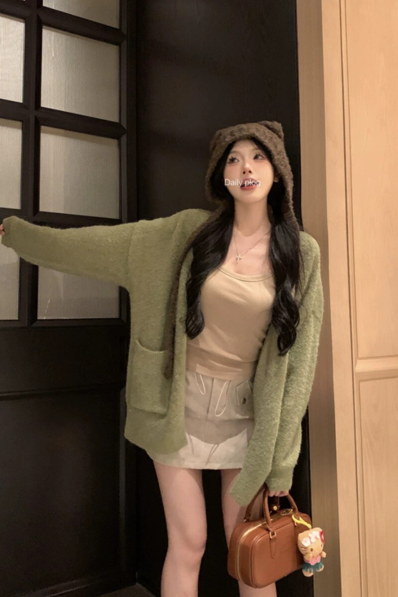 レトログリーンソフトワックスセータージャケット女性秋と冬 2023 新しいルーズで怠惰なスタイルニットカーディガントップ オータム 秋物 ウィンター 冬物 bstraw99174038113 | beaute25