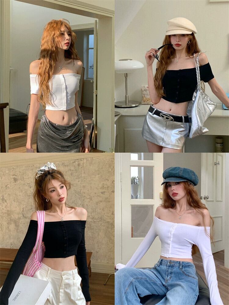 甘いクールなワンショルダー長袖 Tシャツ女性初秋の小さなスリムショートボトムシャツ白カーディガントップ ロング ホワイト 大人ガーリー スウィート キュート カジュアル オータム 秋物 bstraw90959120364 | beaute25