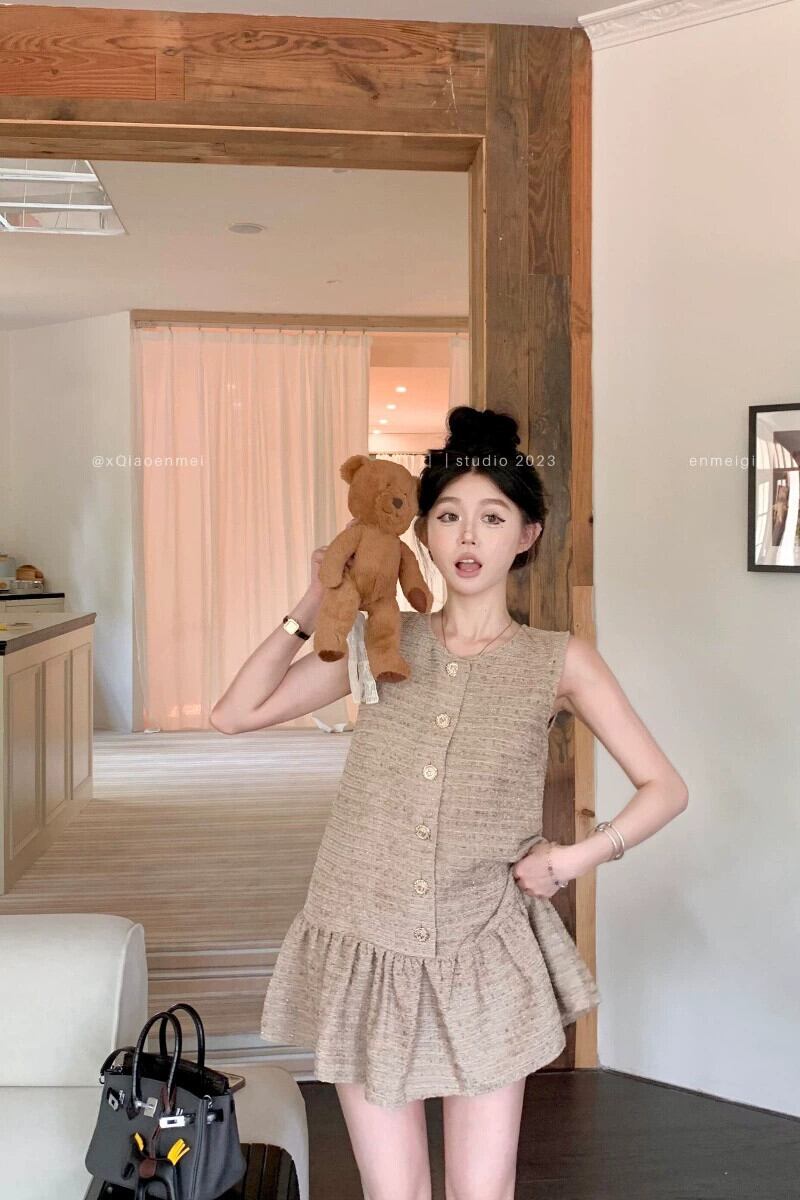 Xiaoxiangfeng 甘いノースリーブベストドレス女性の夏の気質社交家スカート小さなルーズ A ラインスカート 大人ガーリー スウィート キュート カジュアル サマー 夏物 Aライン bstraw6436007023 | beaute25