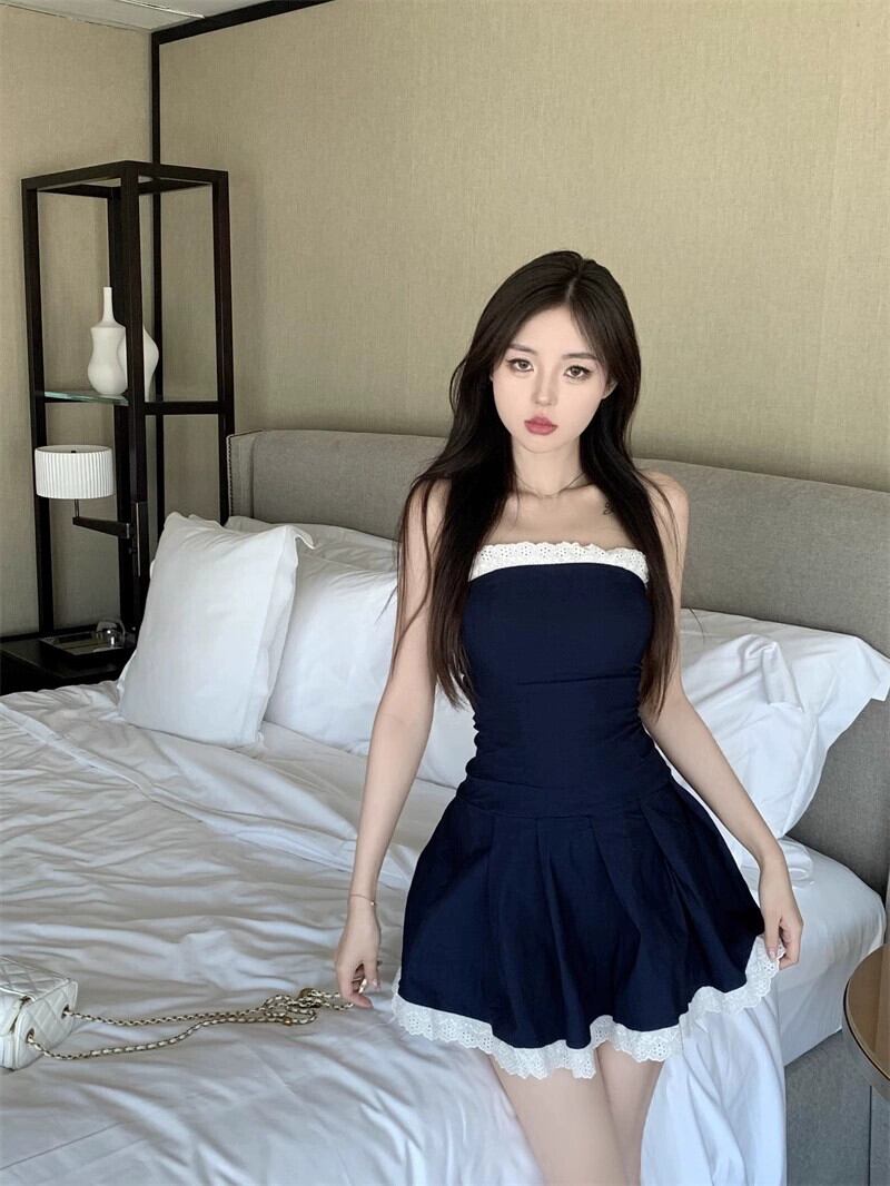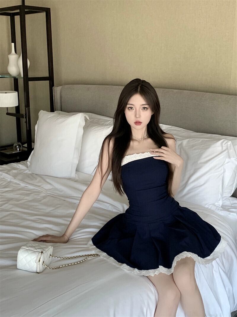 純粋なスタイルスリム A ラインチューブトップスカート女性の夏の背中の開いたセクシーなウエストを締めるショートスカートレースドレス サマー 夏物 Aライン bstraw30442569004 | beaute25