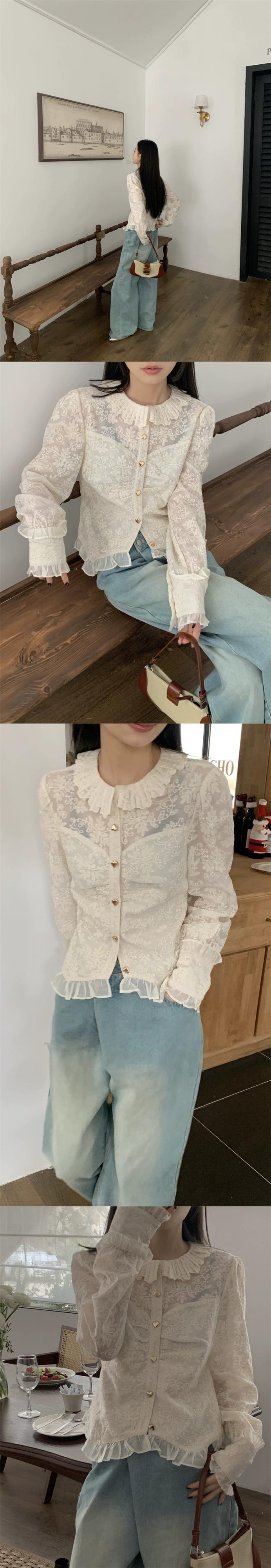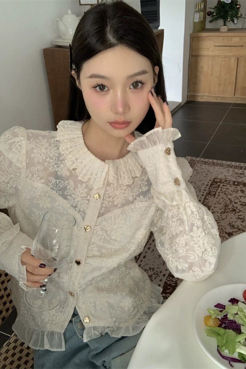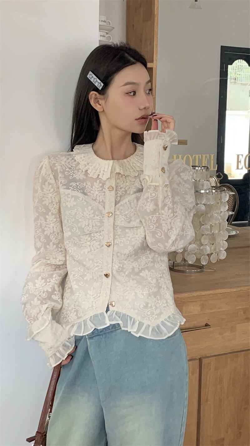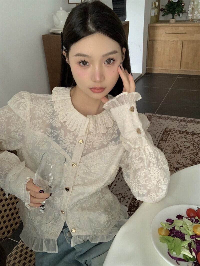 レースドールカラーシャツレディース、秋デザイン、菌エッジ長袖シャツ、フレンチスイートでシックなショートトップス ロング 大人ガーリー スウィート キュート カジュアル オータム 秋物 bstraw68015811618 | beaute25