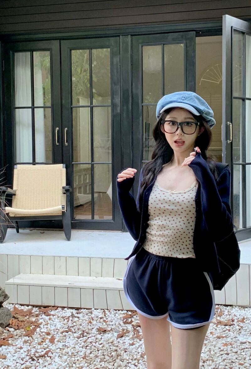 色:フローラルストラップ,ネイビーブルーカーディガン,ネイビーショート