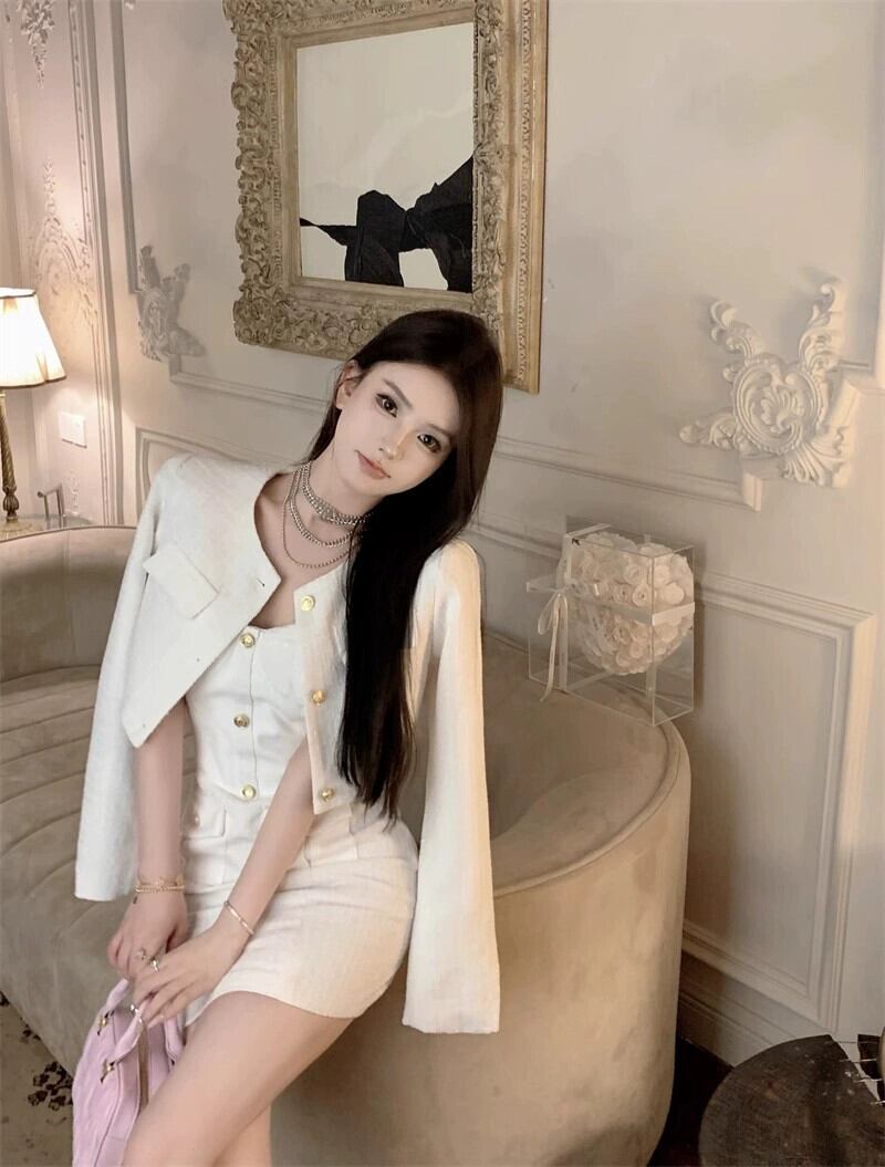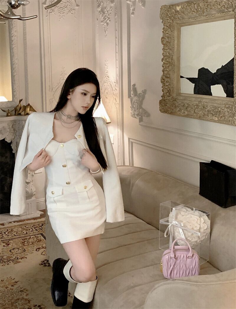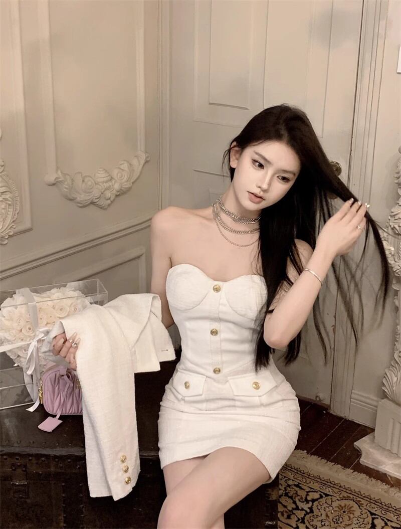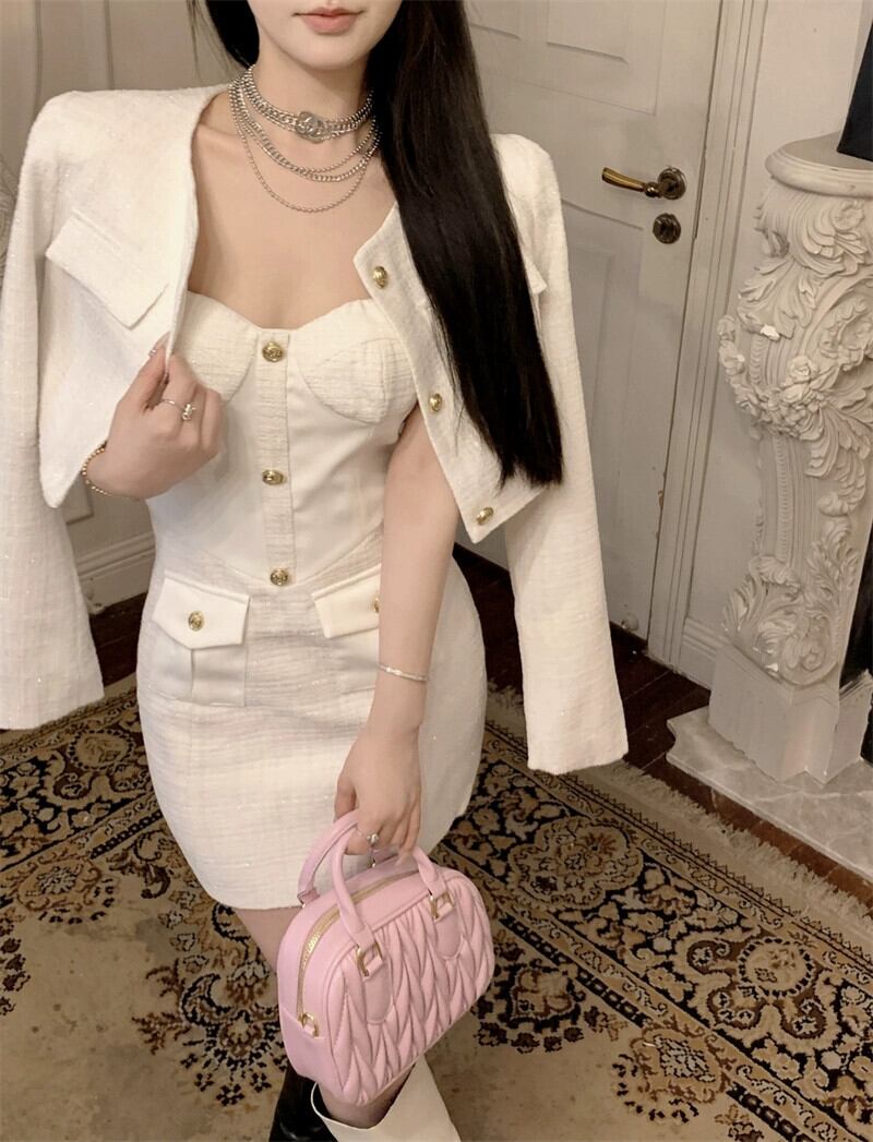 Xiaoxiangfeng スーツ、高級スーツ ジャケット、女性の秋のセクシーなチューブトップ ヒップ ドレス、白の 2 点セット ホワイト オータム 秋物 bstraw41976562006 | beaute25