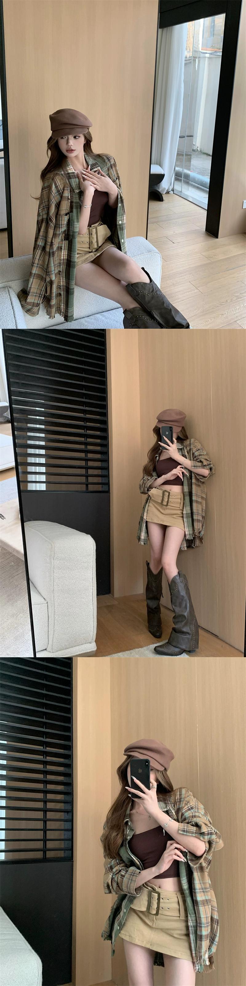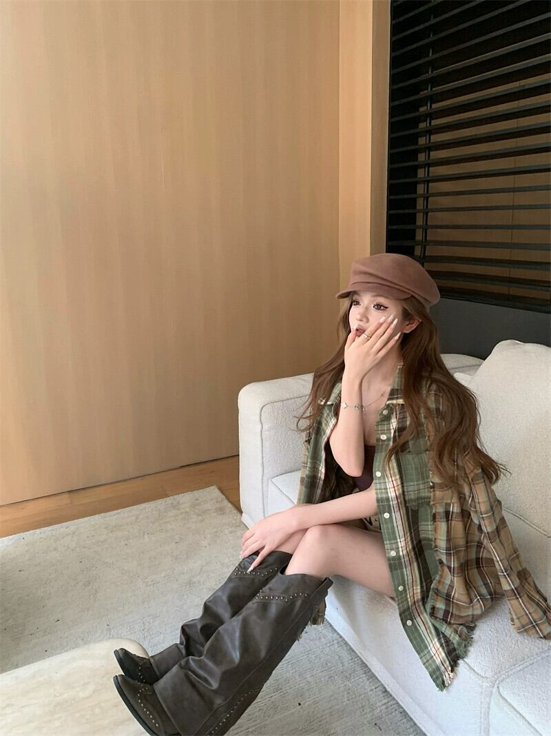 コントラストカラーのスプライシングチェック柄シャツレディース、秋の日焼け止め長袖シャツ、ゆったりとしたミドル丈スタイル、シックなトップスとジャケット ロング オータム 秋物 bstraw87475221884 | beaute25