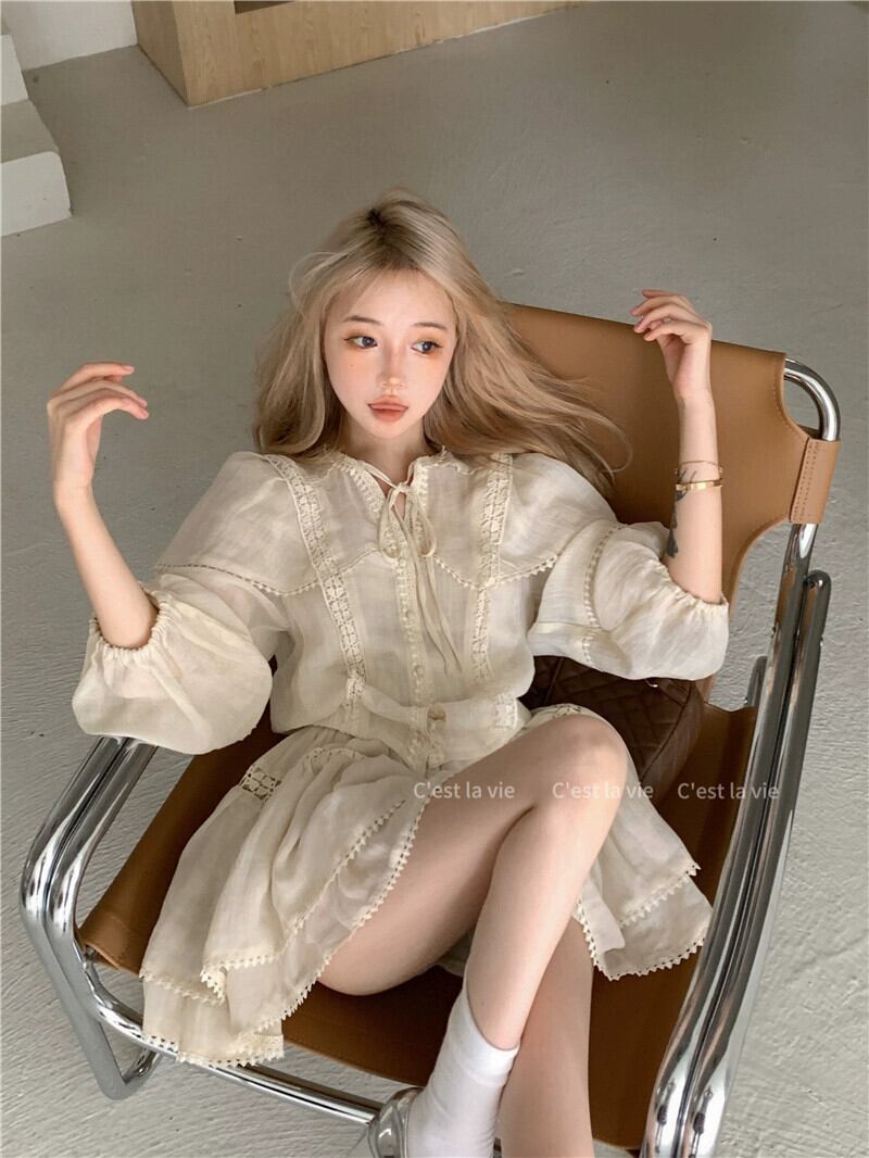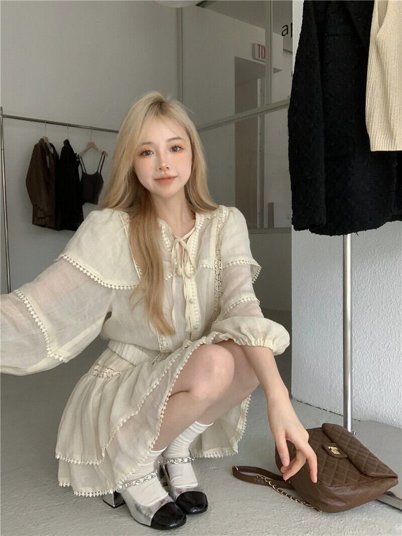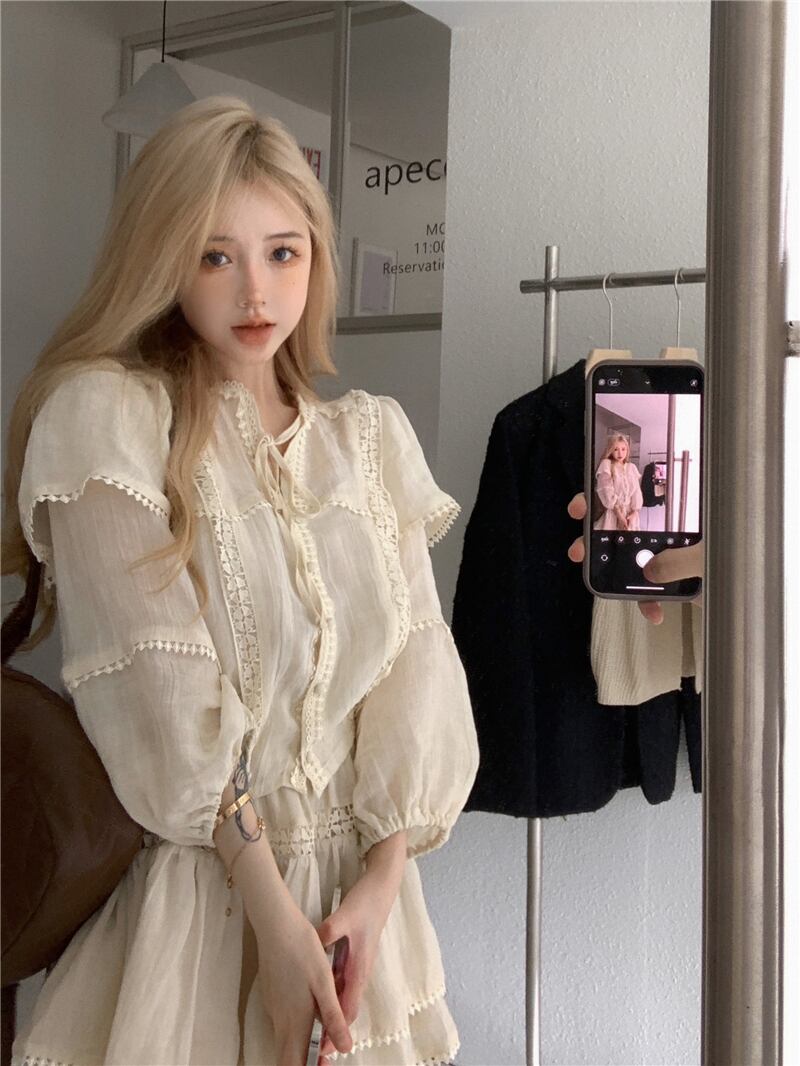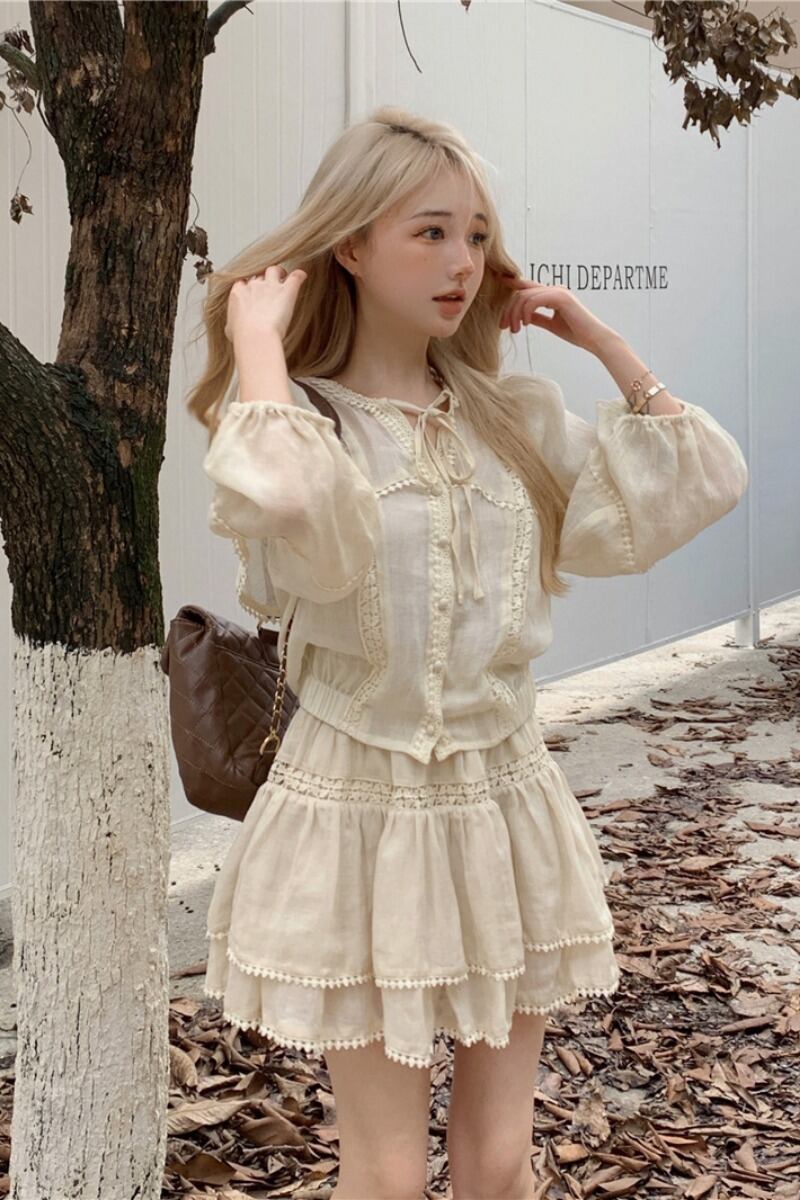フランスの甘い気質スーツ重工業テンセル長袖 v ネックシャツ女性秋ケーキ a ラインスカート 2 点セット ロング 大人ガーリー スウィート キュート カジュアル オータム 秋物 Vネック Aライン bstraw55722725936 | beaute25