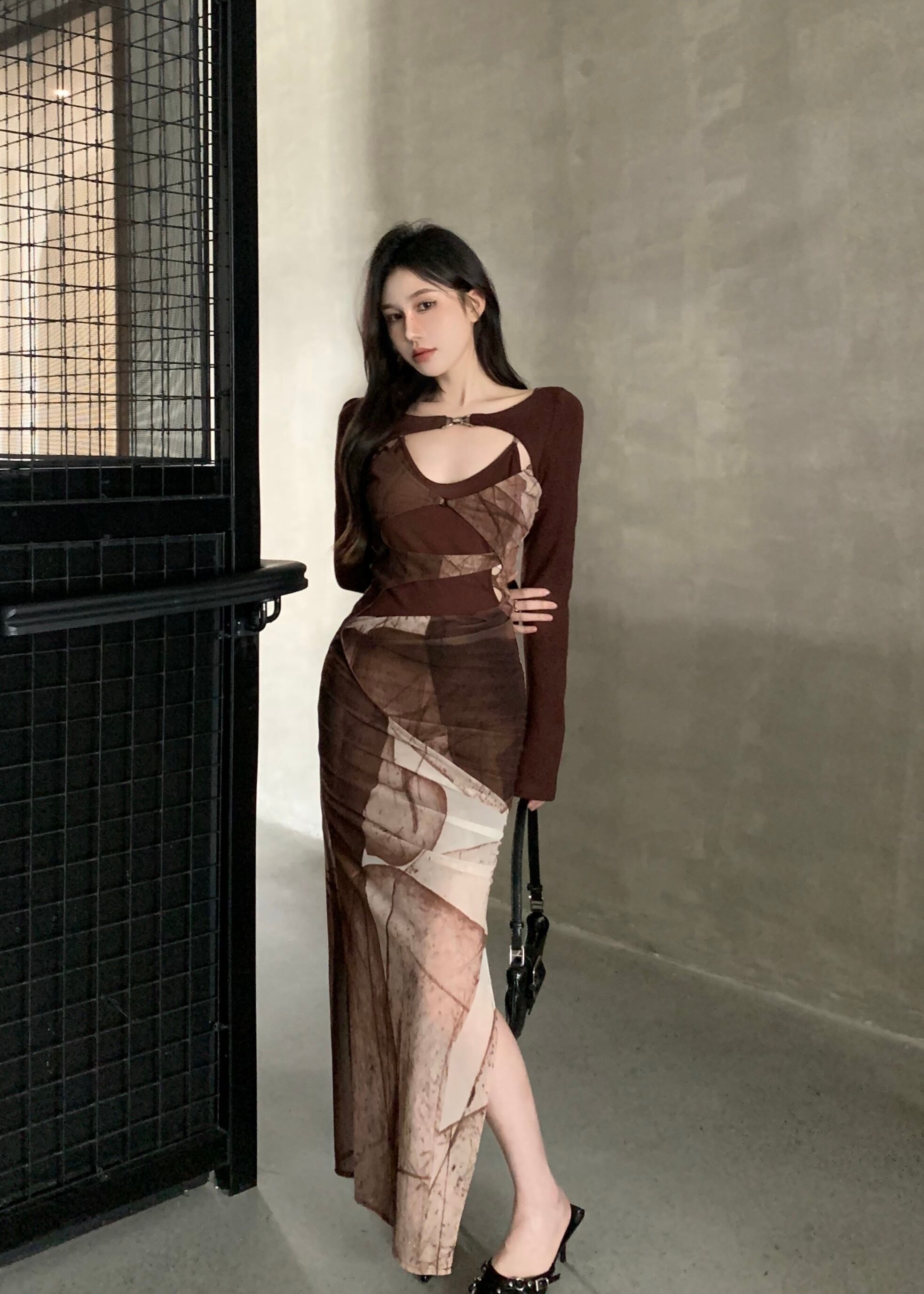 レトロなスタイルのサスペンダードレスの女性、秋のメッシュストレッチスプライシングスカート、ウエストスリット、ヒップカバーロングスカート オータム 秋物 bstraw6144760609 | beaute25