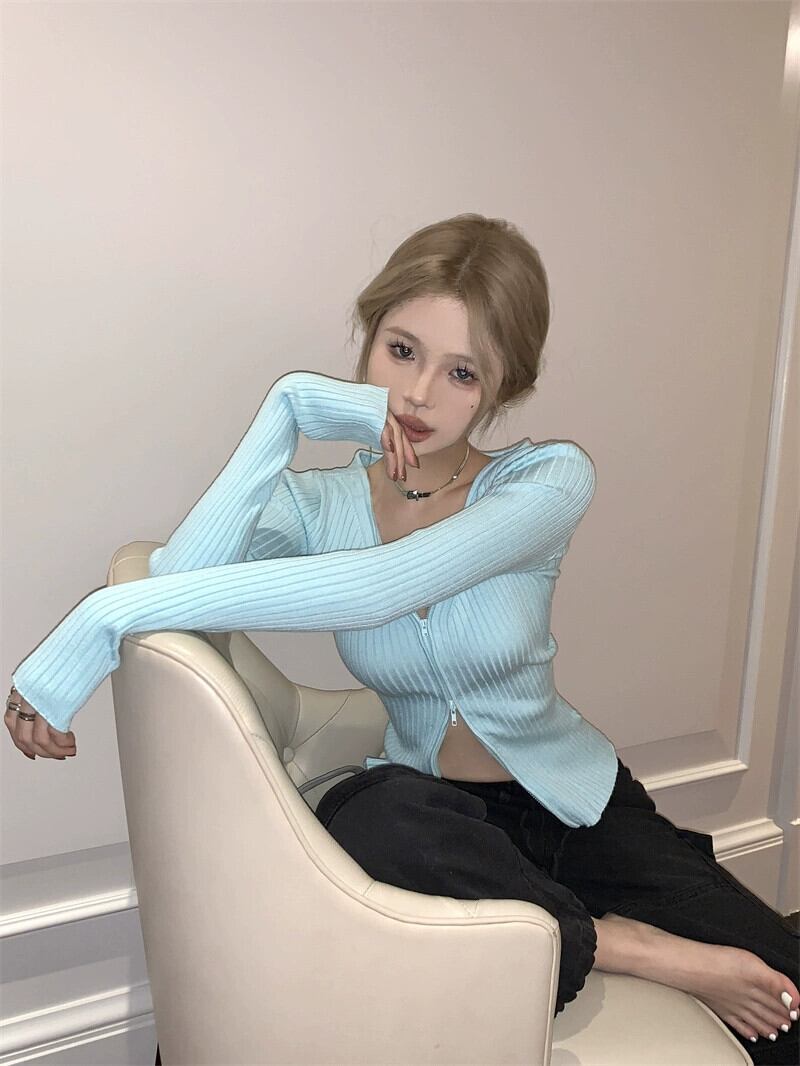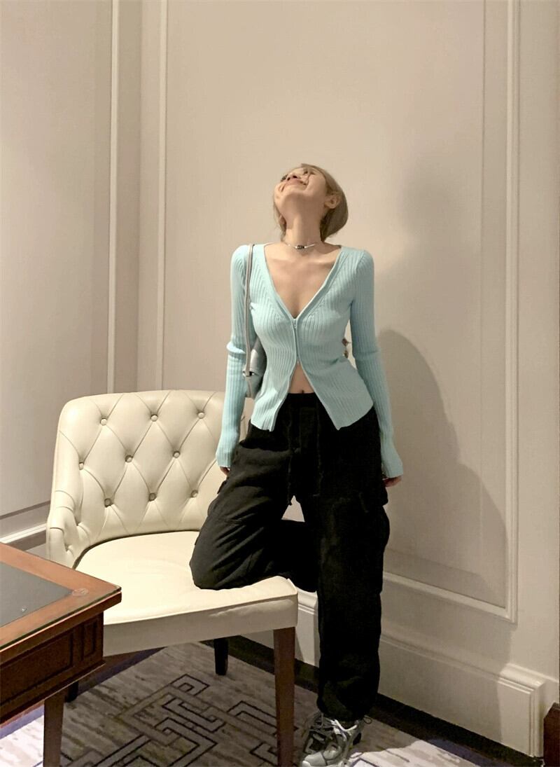 甘い V ネック長袖セーターセーター女性秋スリムカーディガンジッパージャケット底シャツトップ ロング 大人ガーリー スウィート キュート カジュアル オータム 秋物 Vネック bstraw89780927633 | beaute25