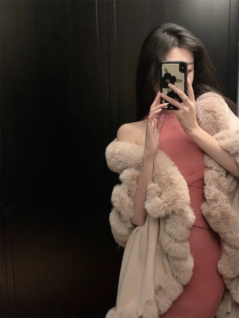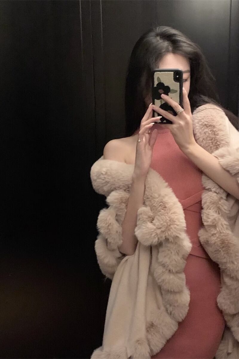 色:あんずショール,ピンクのショール,ピンクベース,アプリコットベース