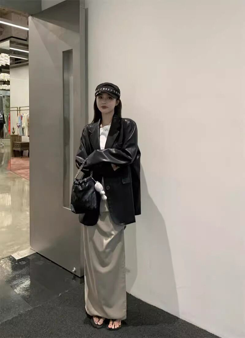秋の黒のレトロなPUレザーショートジャケットの女性、小、中、長のオートバイレザージャケット、今年人気のトップス ロング ブラック オータム 秋物 bstraw65315571872 | beaute25