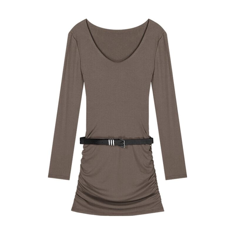 純粋な欲望の気質 v ネックニットドレスの女性の秋のセクシーなスリムヒップ抱きショートスカート長袖ウエストスカート ロング オータム 秋物 Vネック bstraw62069055529 | beaute25