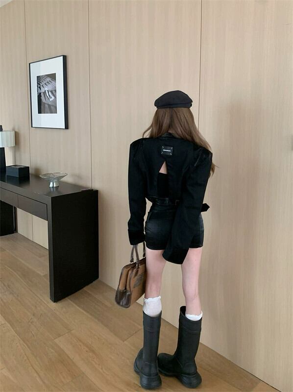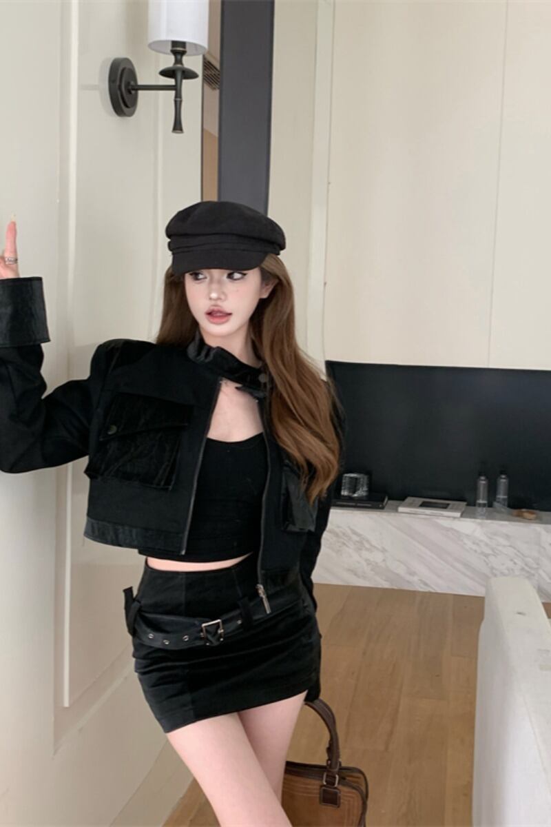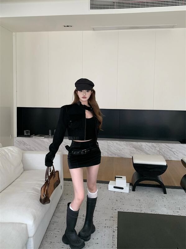 黒長袖アウターショートコートレディース秋甘くてクールなスーツハイウエストタイトヒップ抱きショートスカート2点セット ロング ブラック 大人ガーリー スウィート キュート カジュアル オータム 秋物 bstraw69422542574 | beaute25