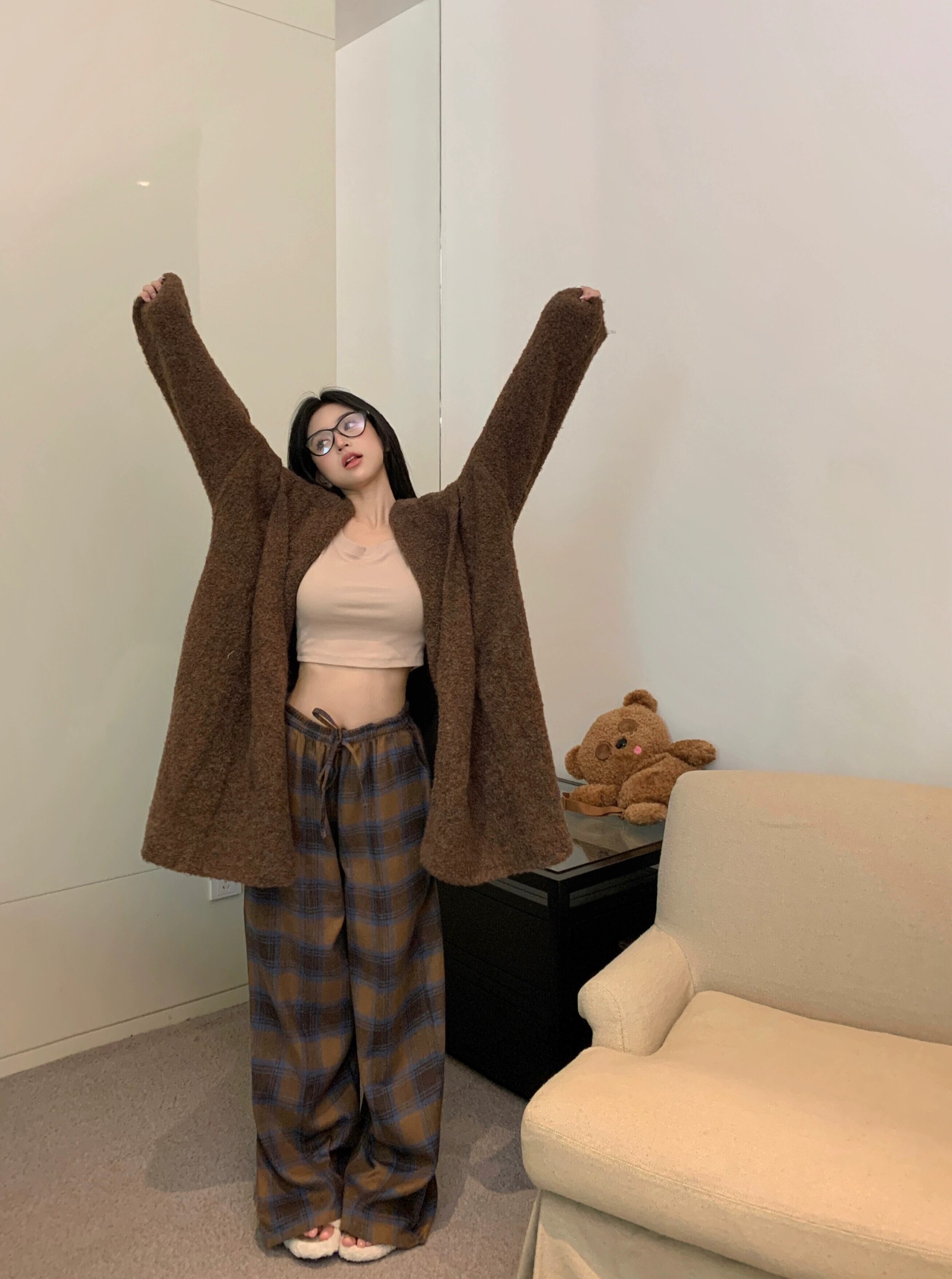 アメリカンレトロチェック柄カジュアルパンツレディース秋ゆったり怠惰なフロアレングスワイドレッグパンツズボンハイウエストストレートパンツ オータム 秋物 bstraw76532985252 | beaute25