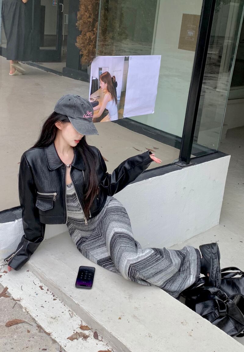 秋の黒の高級 pu レザー ラペル ショート コートの女性、小さな気質のショート レザー オートバイ ジャケット トップ ブラック オータム 秋物 bstraw22912023613 | beaute25