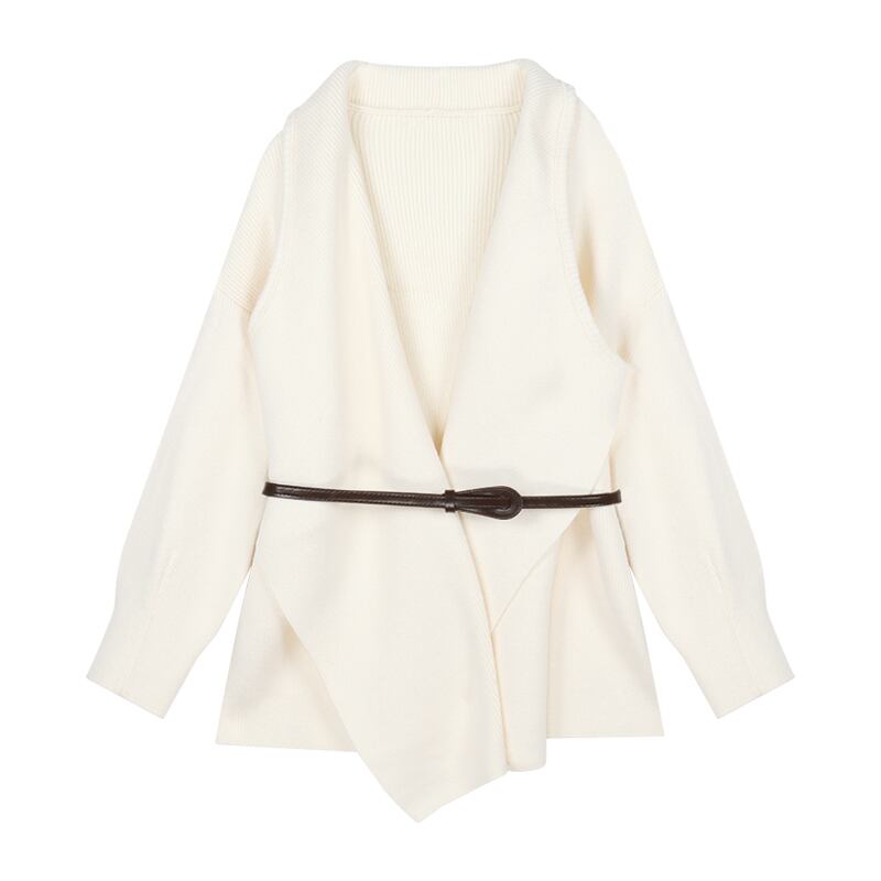香港スタイルのレトロな白のセーターカーディガン女性の秋冬の新 2023 長袖ルーズコート怠惰なスタイル V ネックトップ ロング ホワイト オータム 秋物 ウィンター 冬物 Vネック bstraw76280182258 | beaute25