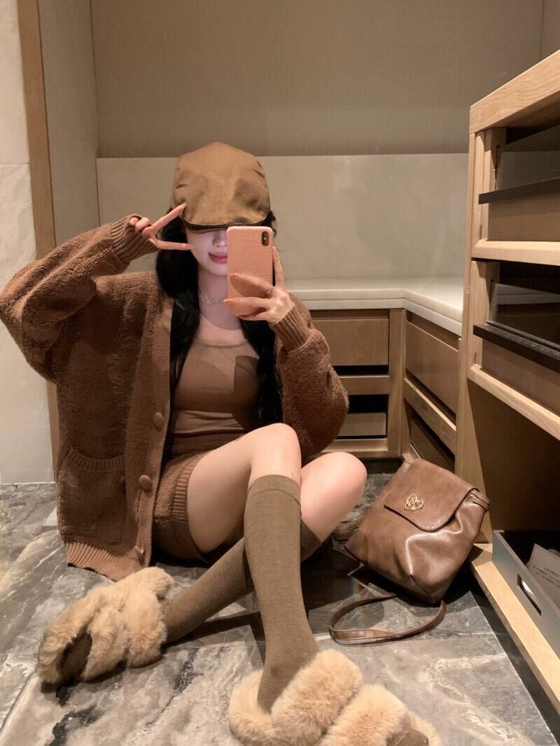 ブラウン長袖セーターカーディガンコート女性秋冬 2023 新しいルーズアウターウェアミッドレングス怠惰なスタイルトップ ロング オータム 秋物 ウィンター 冬物 bstraw55443251748 | beaute25