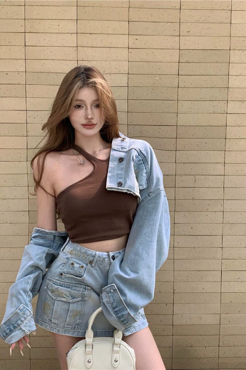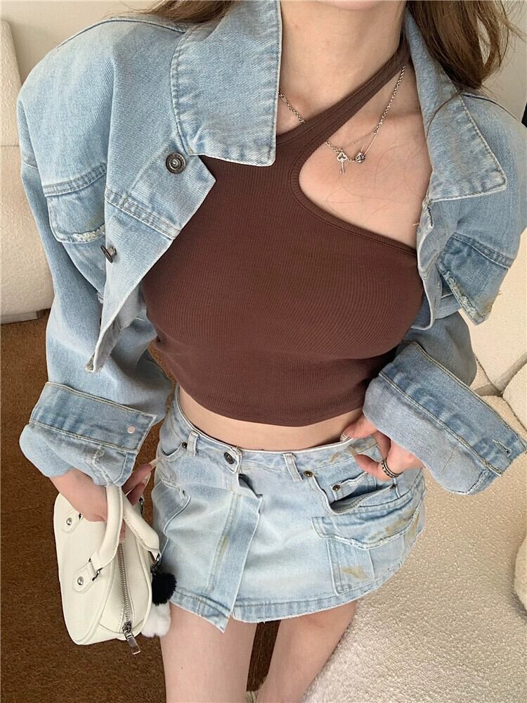 ホットデニムスーツレディース秋ショートジャケットコートトップハイウエストスカートヒップカバーショートスカート2点セット ハイウェスト オータム 秋物 bstraw66042423341 | beaute25