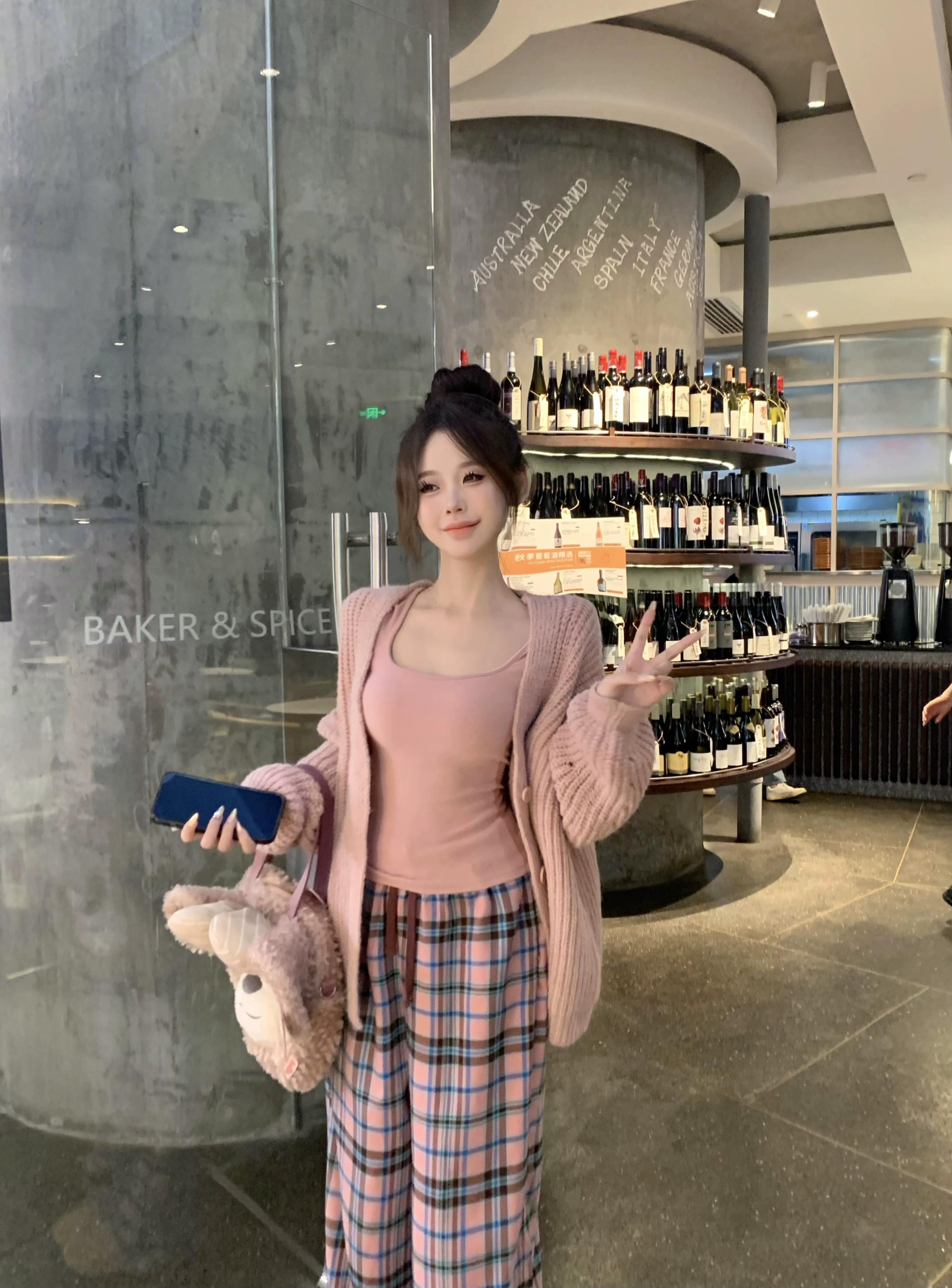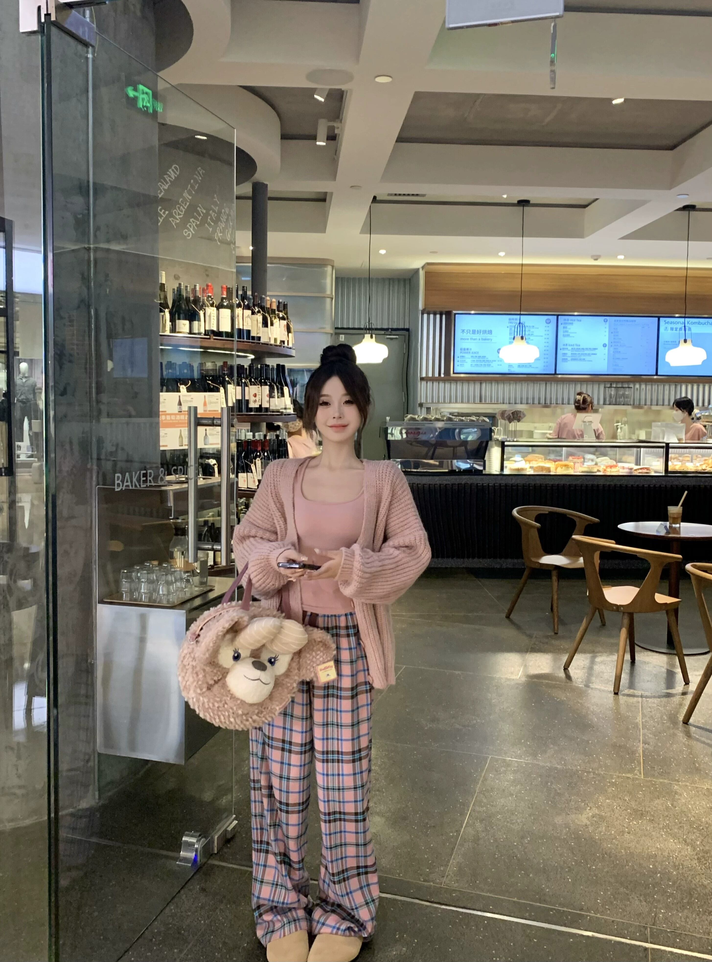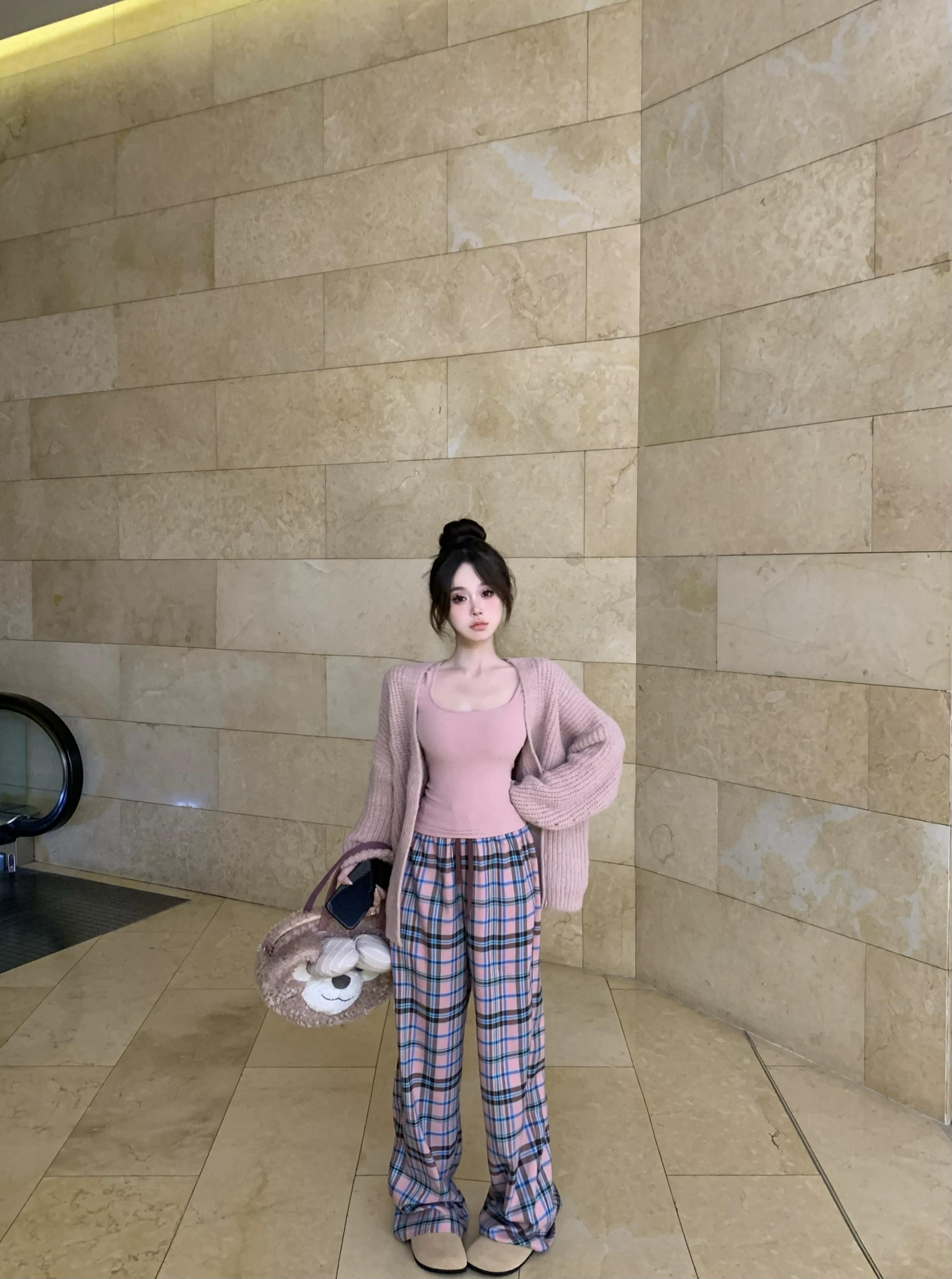 色:カーディガン,長袖Tシャツ,チェック柄パンツ
