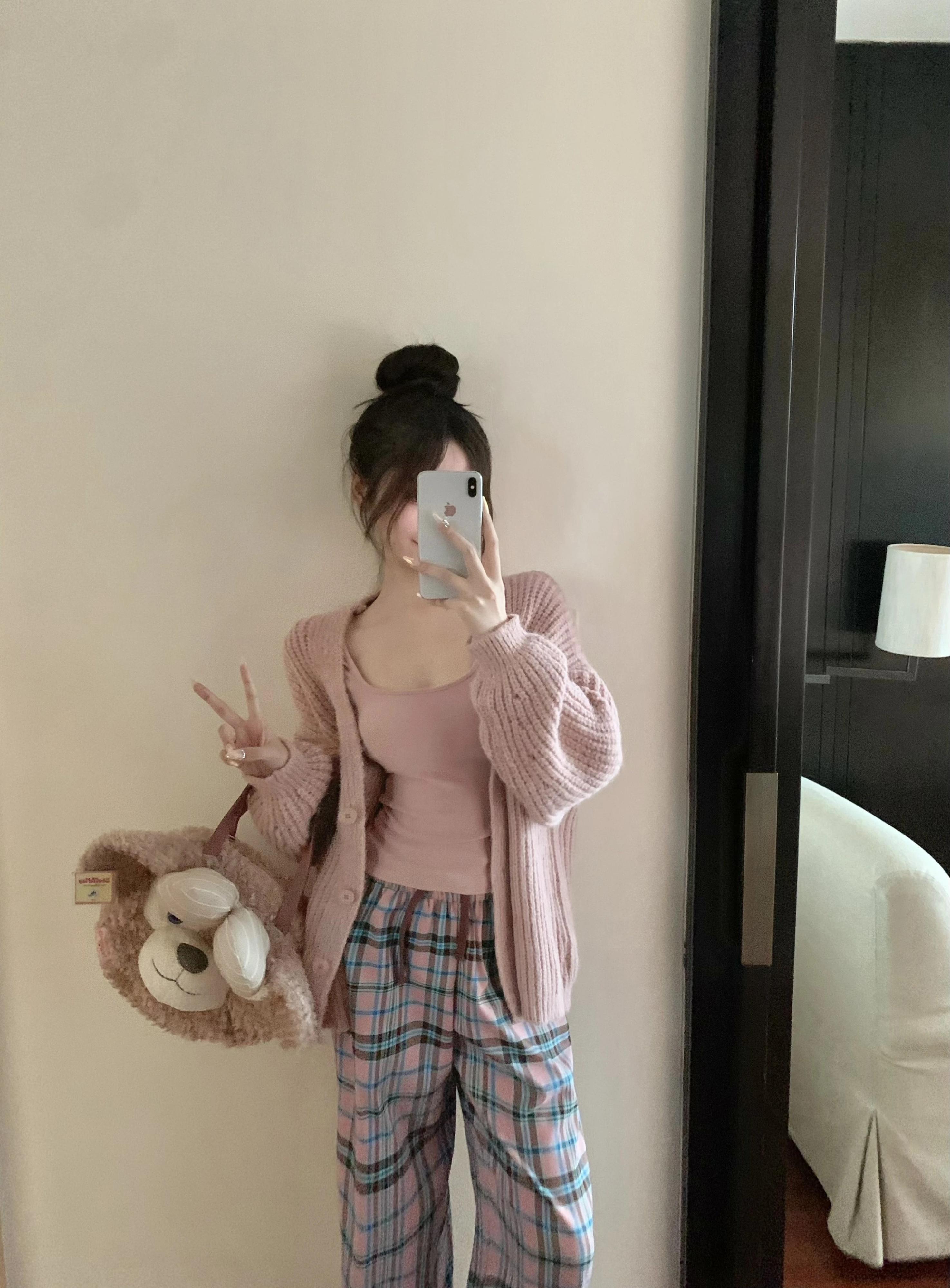 怠惰なソフトワックス状 V ネックセータージャケット女性秋と冬ピンク優しいルーズ胸ふふニットカーディガントップアウター オータム 秋物 ウィンター 冬物 Vネック bstraw45279594645 | beaute25