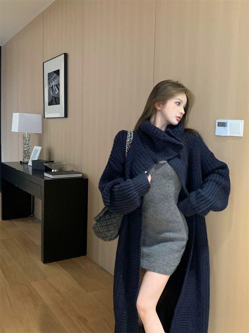 - 秋と冬のレトロな怠惰なスタイルのエンドラペルセータージャケットレディースルーズミッドレングス気質ニットカーディガントップ オータム 秋物 ウィンター 冬物 bstraw14914881092 | beaute25