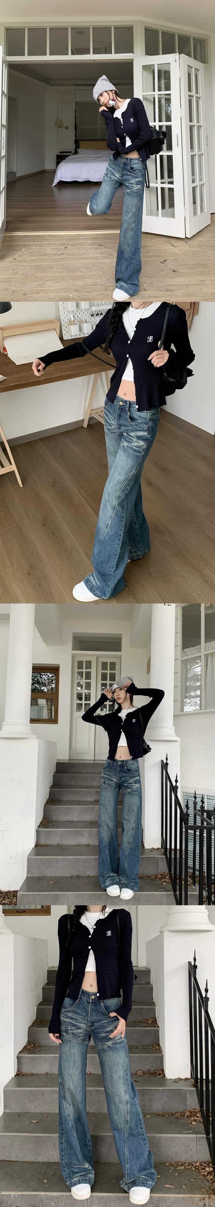 アメリカンレトロなデザインのスプライシングジーンズレディース、秋のハイウエストストレートパンツ、ゆったりとしたワイドレッグのわずかにフレアなパンツ レッド オータム 秋物 bstraw16526173334 | beaute25