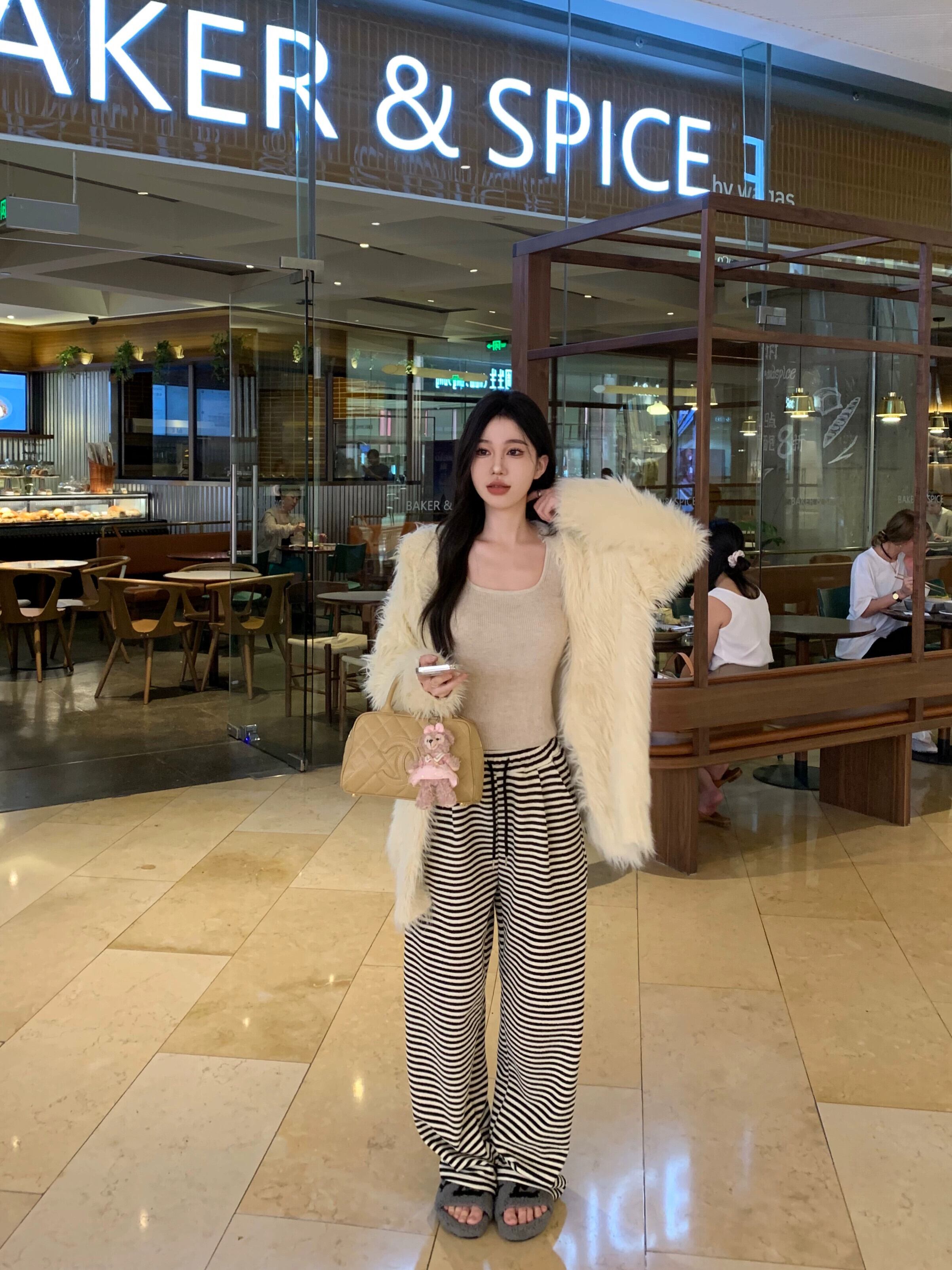 色:セーターカーディガン,ストライプパンツ,中のベスト