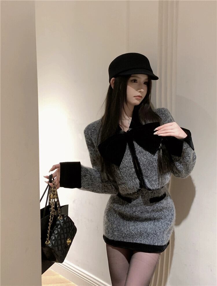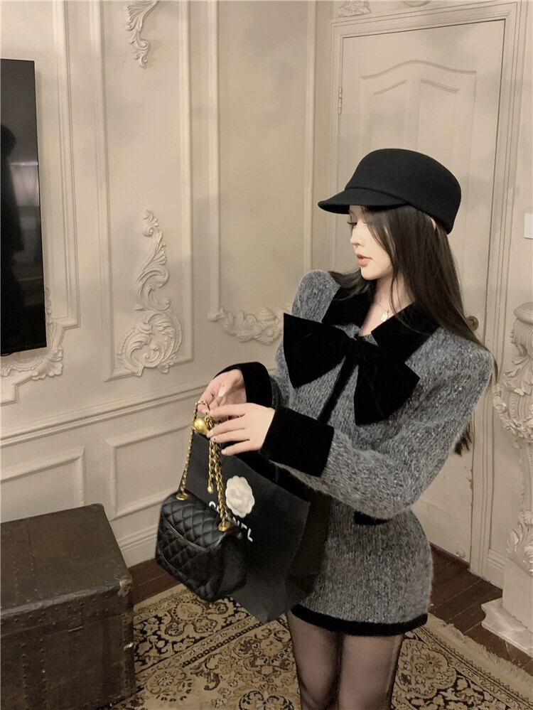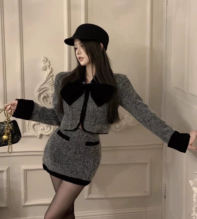 フランス風スモールフレグランススーツ、高級リボンウールショートコート、レディース秋冬ヒップカバースカート、2点セット オータム 秋物 ウィンター 冬物 bstraw43522417176 | beaute25